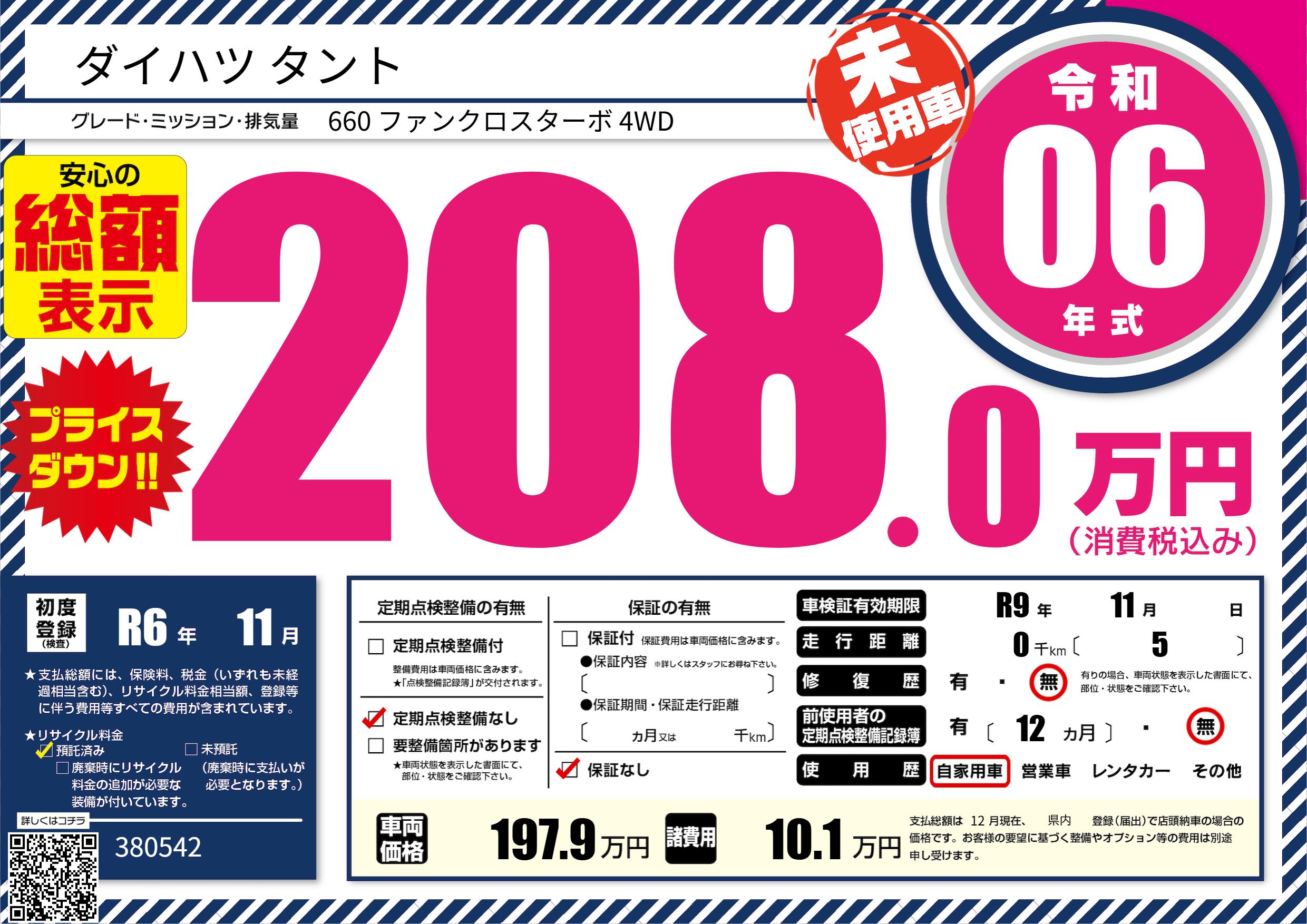 | 走行キロ | - | 初年度登録 | R6年11月 |