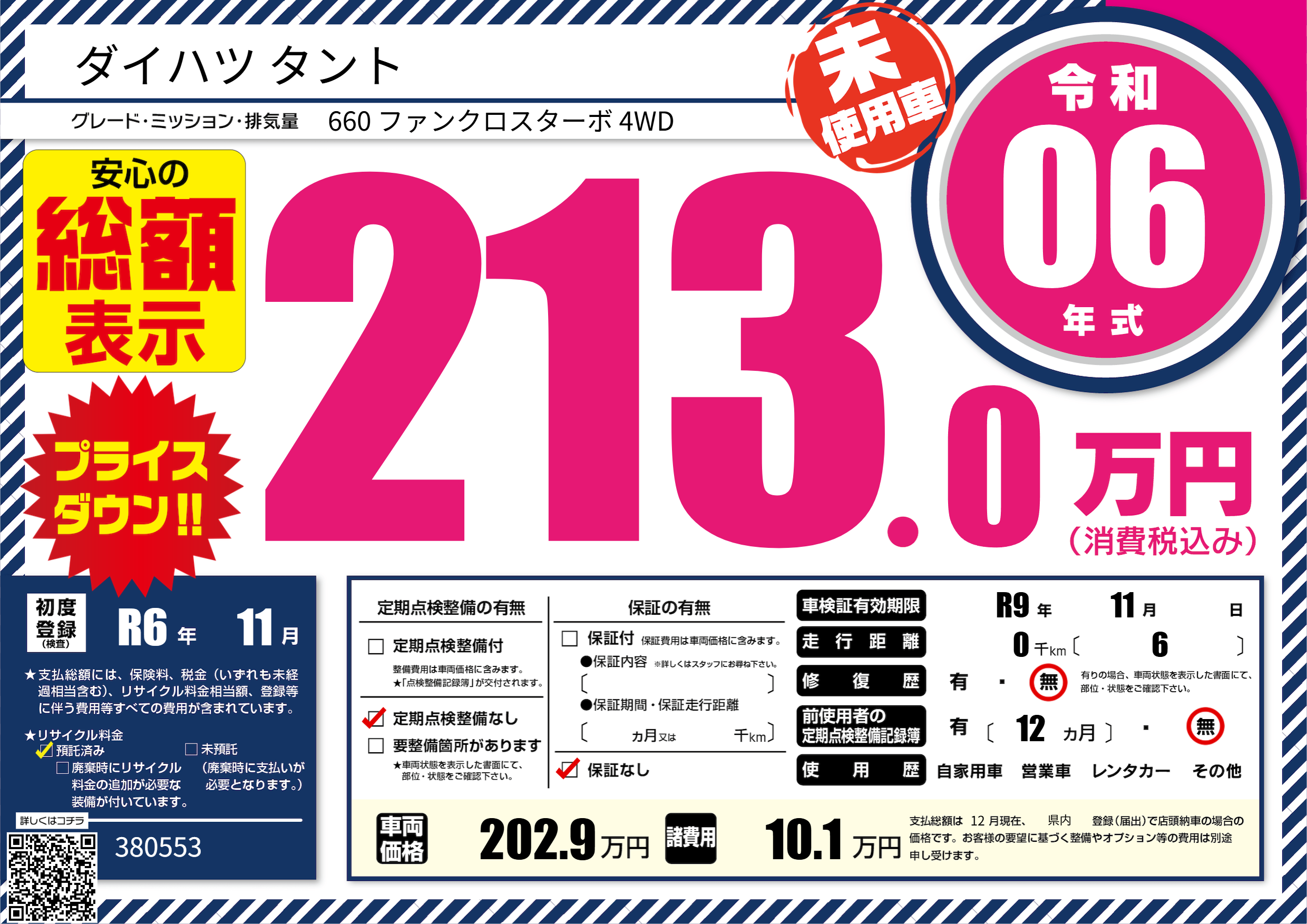 | 走行キロ | - | 初年度登録 | R6年11月 |