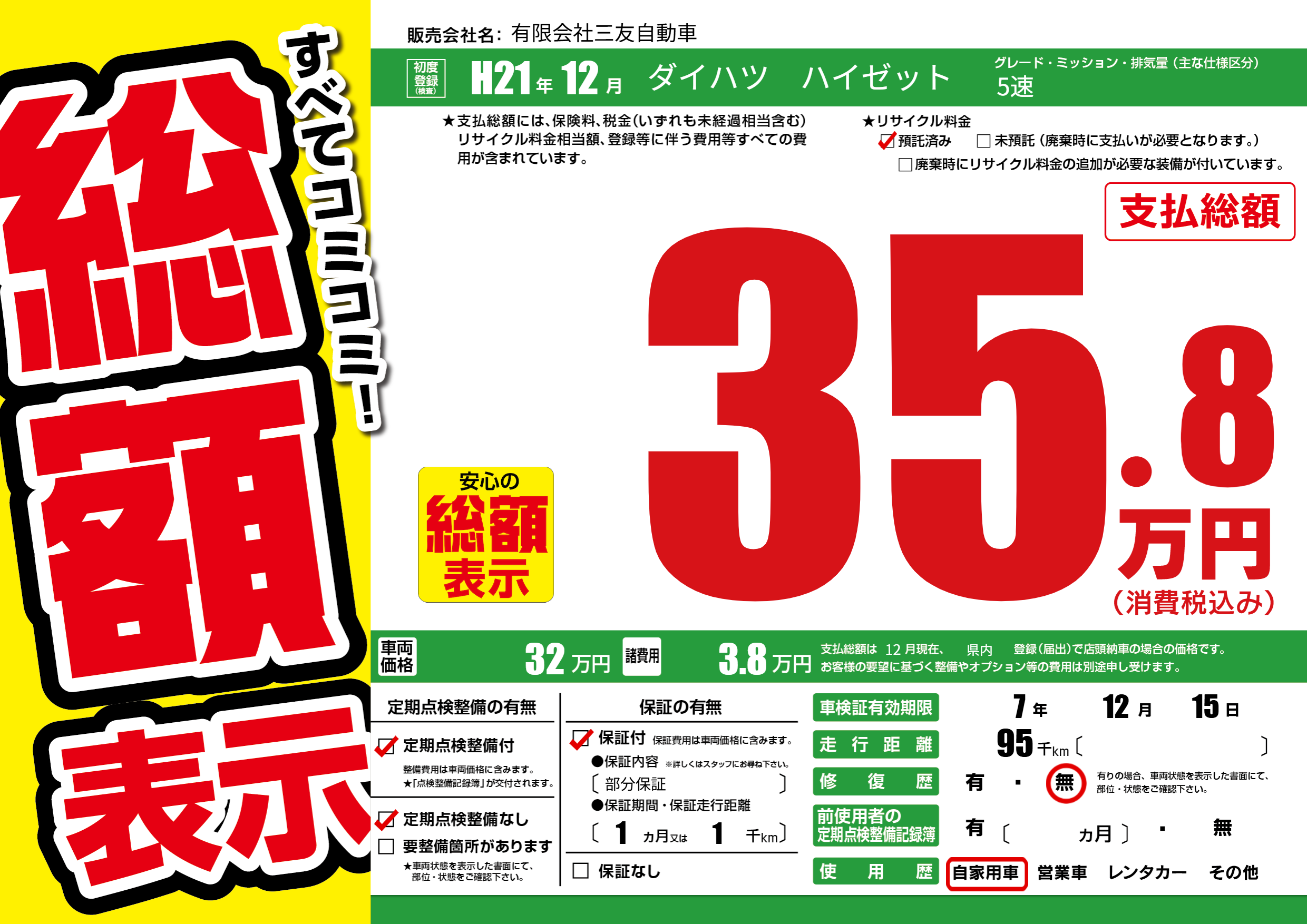 | 定期点検整備 | 定期点検整備あり 定期点検整備なし | ||