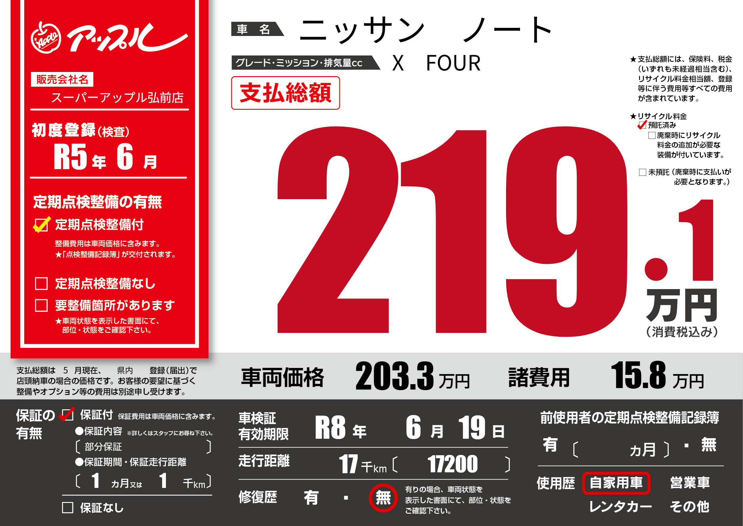 | 走行キロ | 1.7万km | 初年度登録 | R5年6月 |