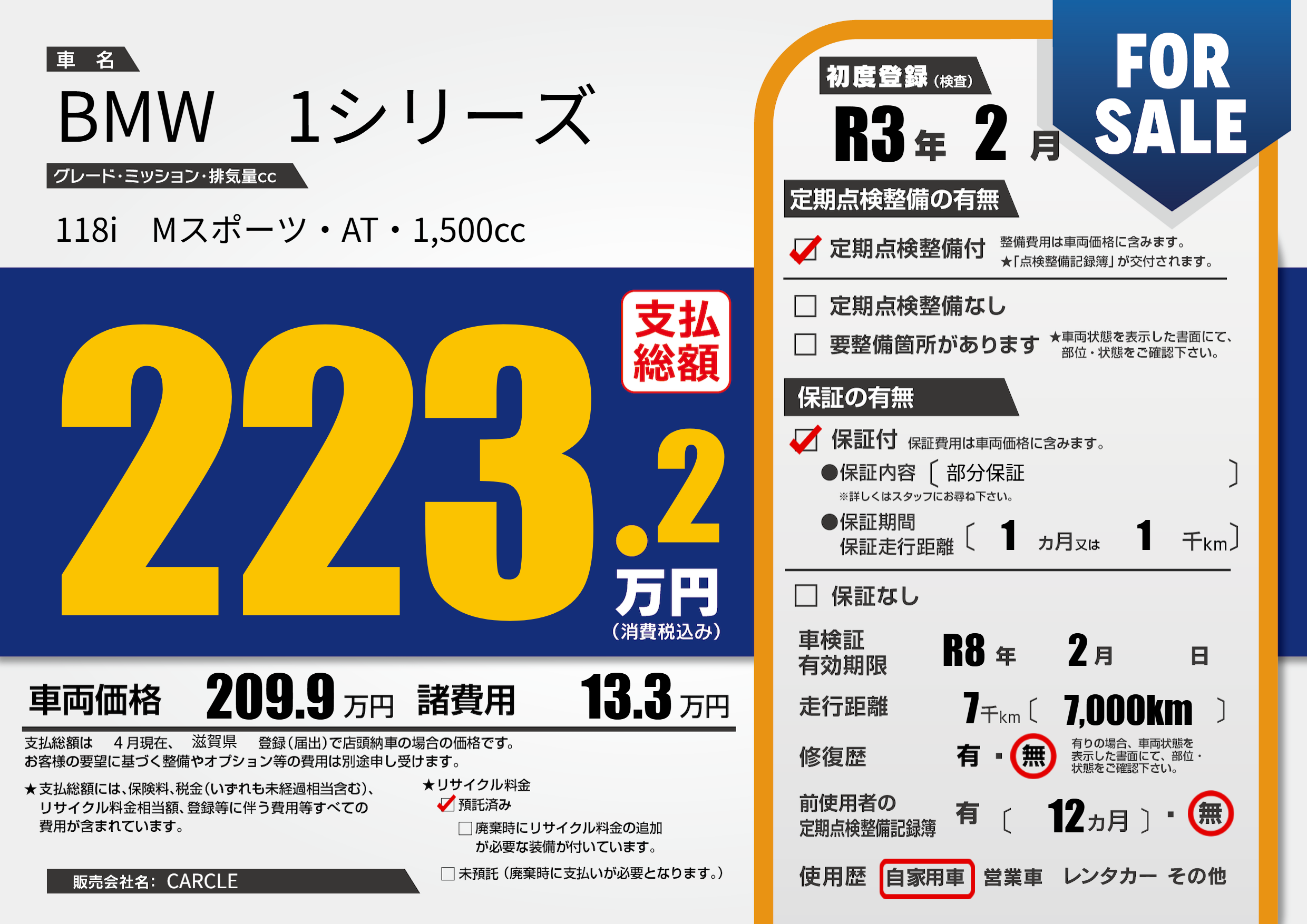 | 走行キロ | 0.7万km | 初年度登録 | R3年2月 |