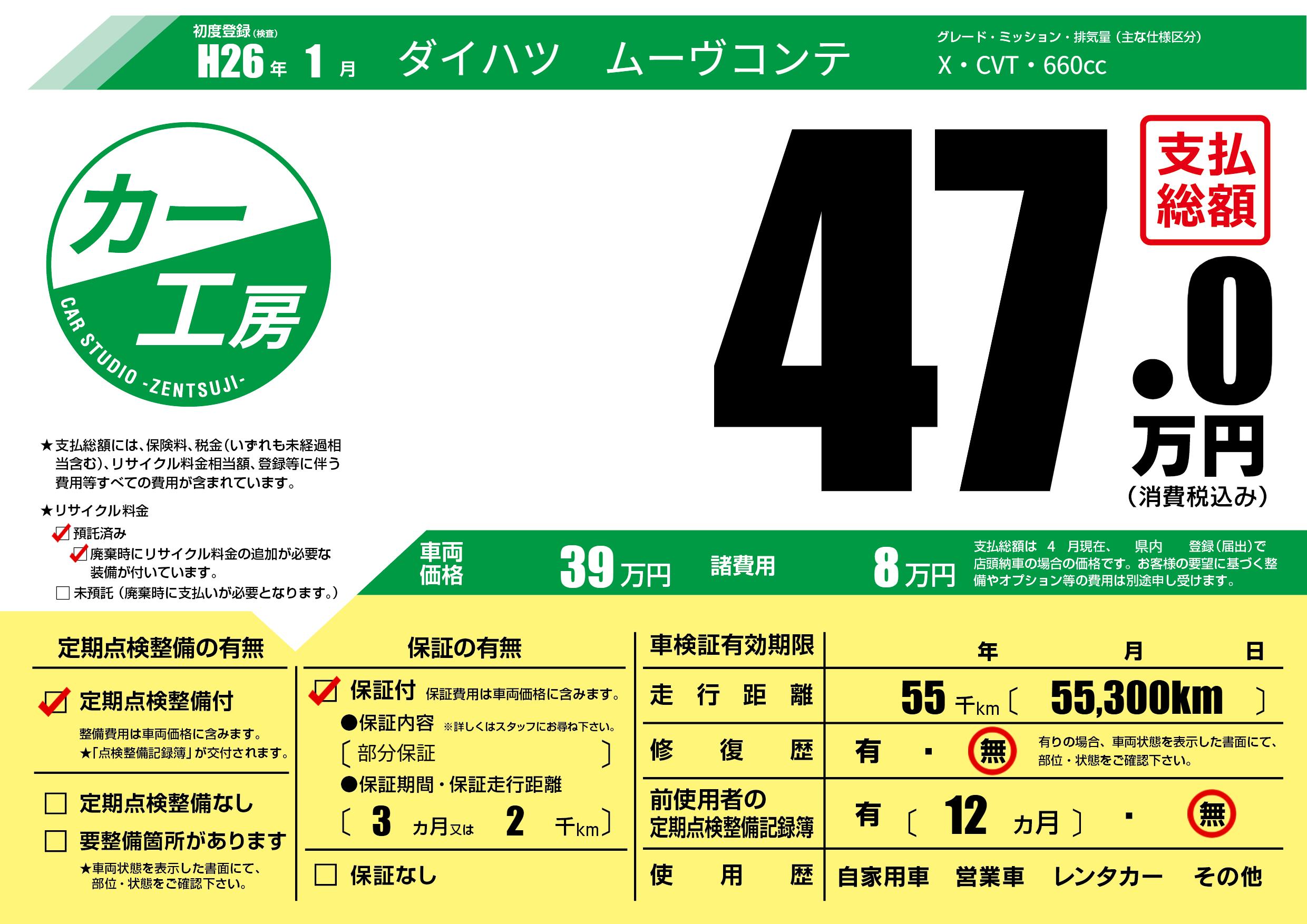 | 定期点検整備 | 定期点検整備あり | ||