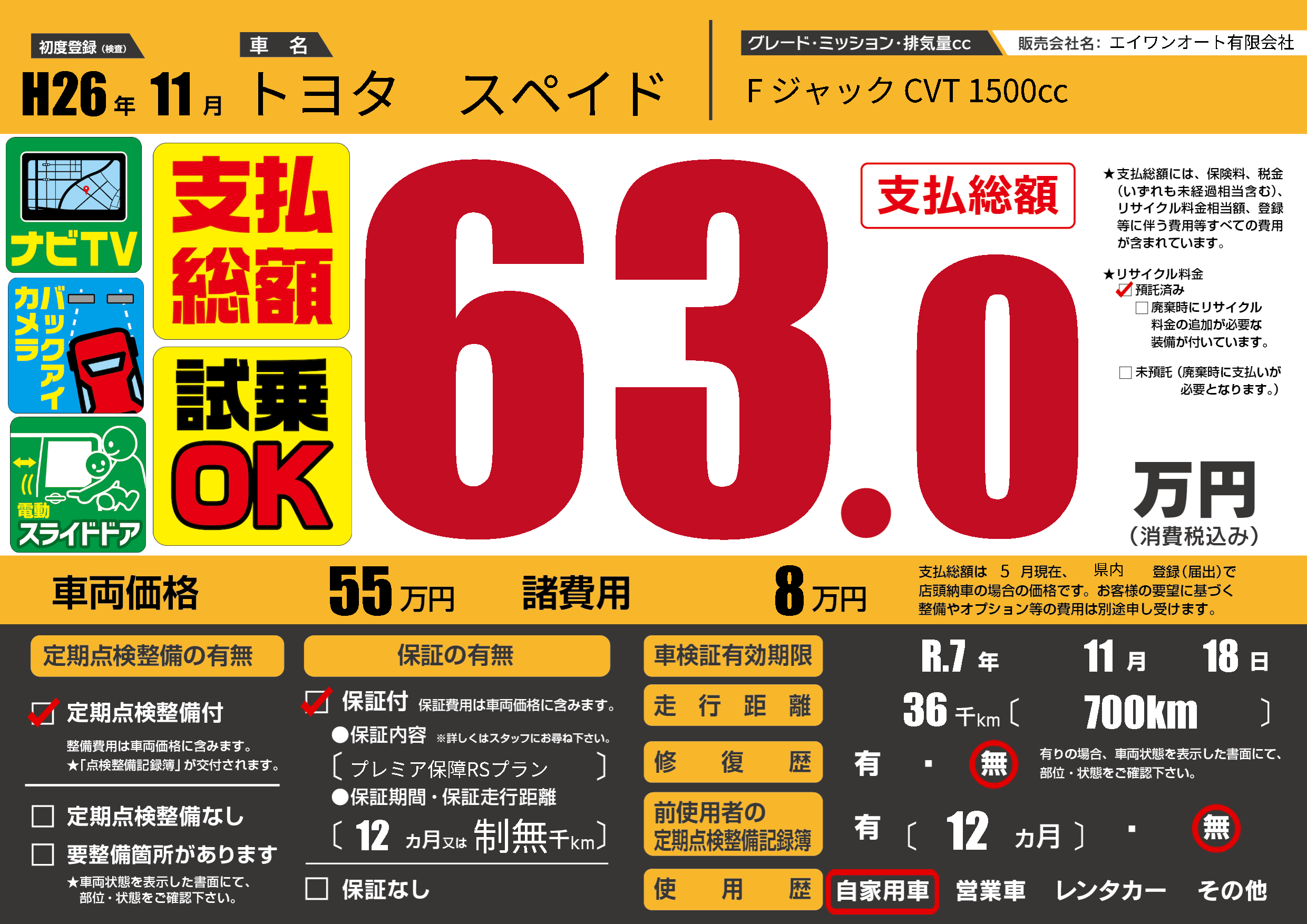 なし | 車検制限 | R.7年11月18月 |