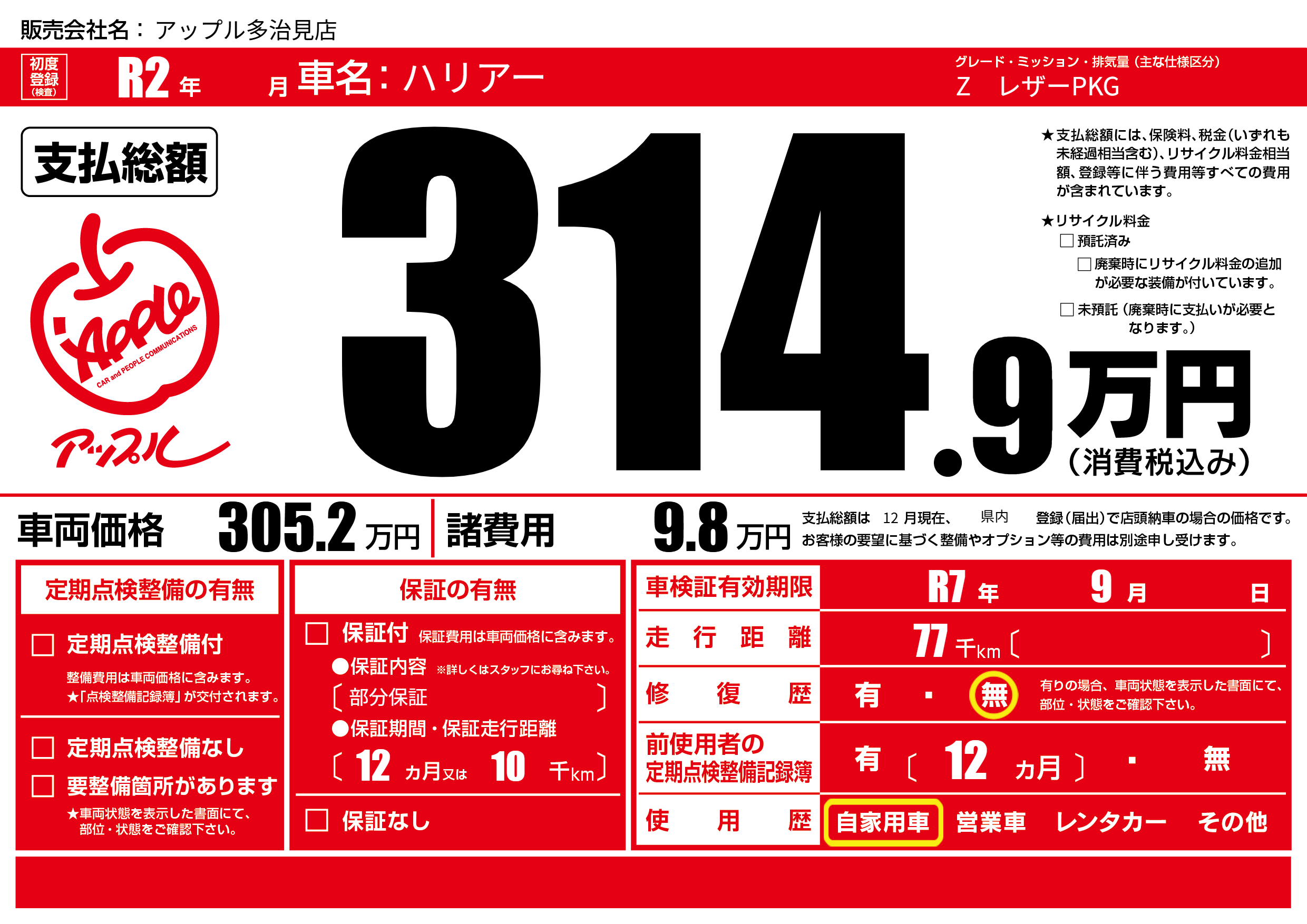 | 走行キロ | 7.7万km | 初年度登録 | R2年---月 |