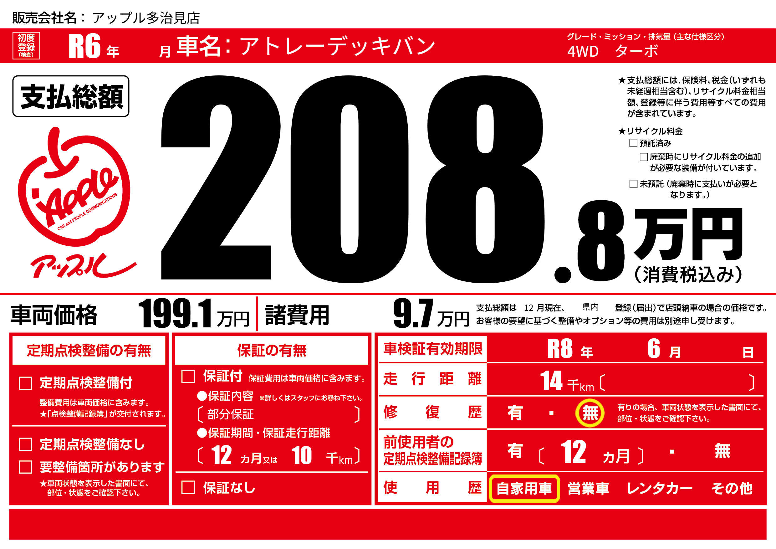 | 走行キロ | 1.4万km | 初年度登録 | R6年---月 |