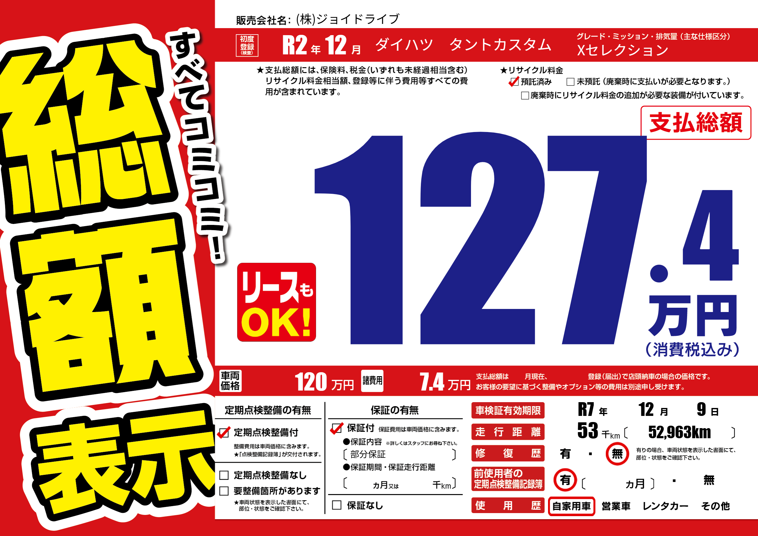 | 走行キロ | 5.3万km | 初年度登録 | R2年12月 |