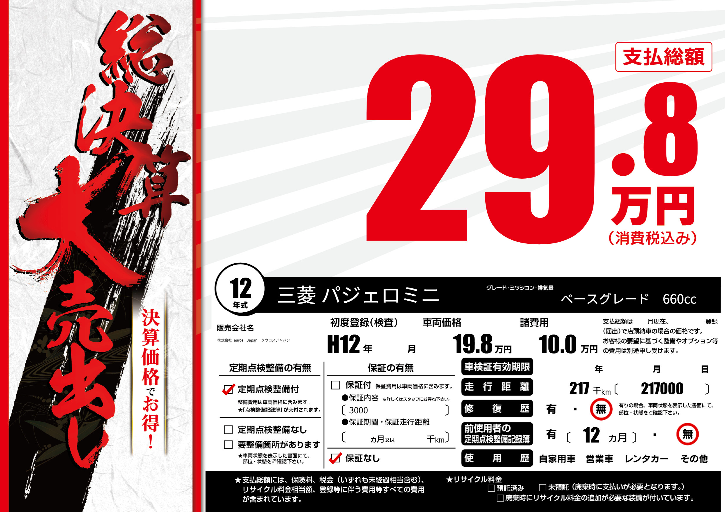 | 車名 | 三菱 パジェロミニ | グレード ミッション 排気量 |