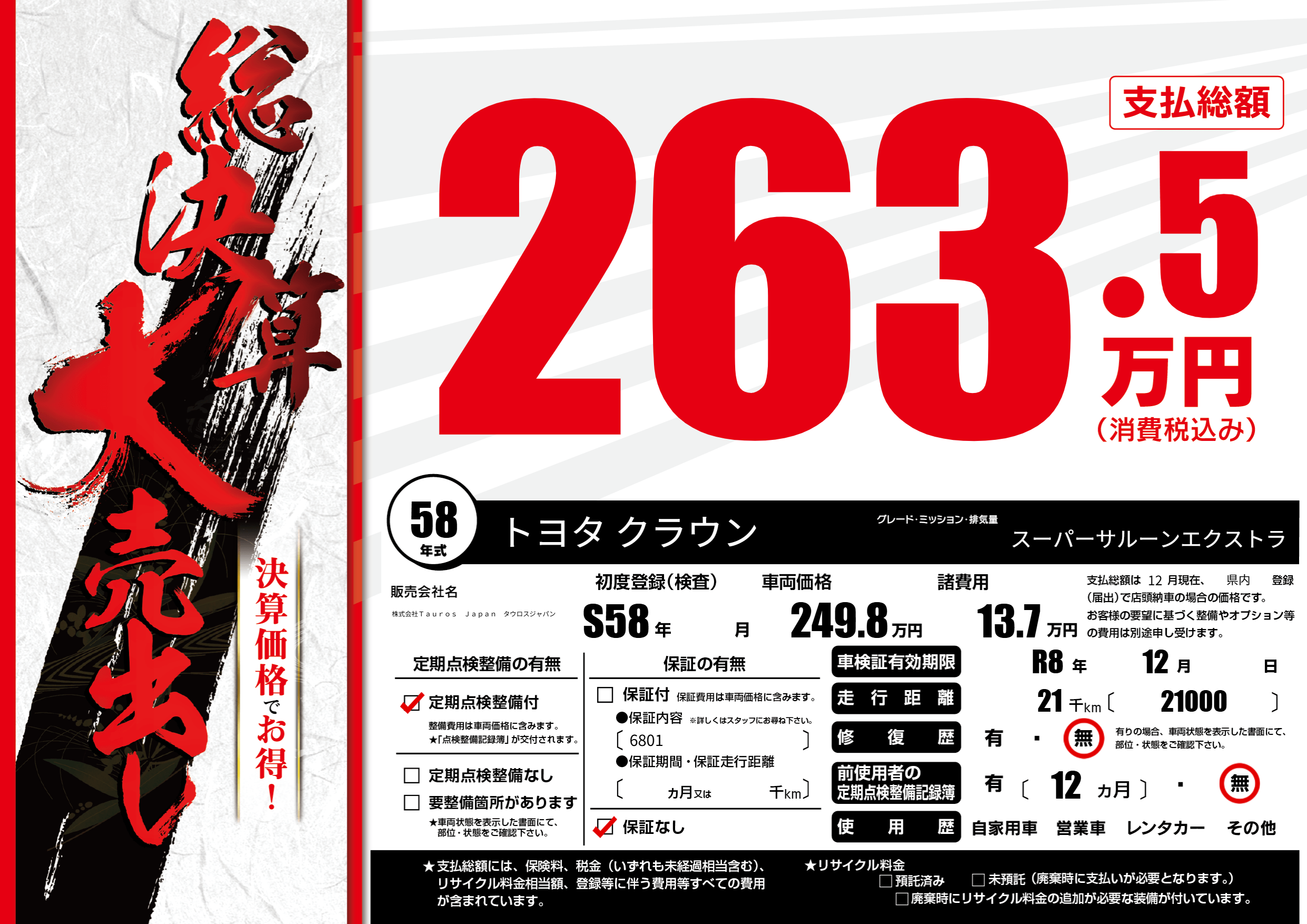 | 車名 | トヨタ クラウン | グレード ミッション 排気量 |