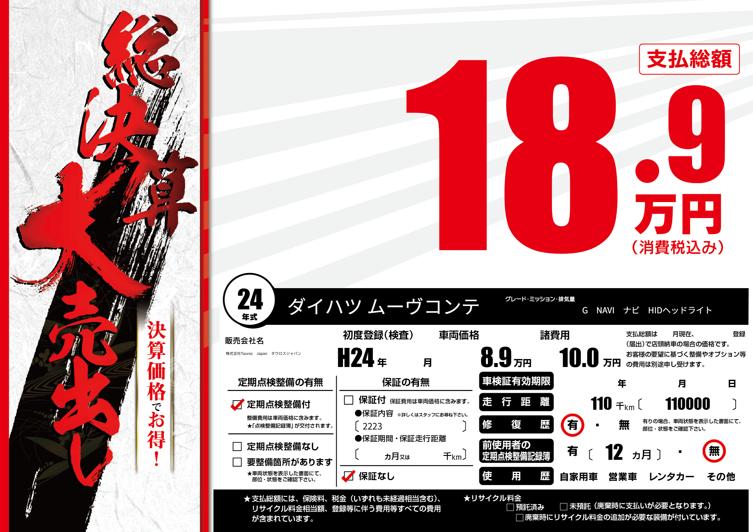 | 走行キロ | 11万km | 初年度登録 | H24年---月 |