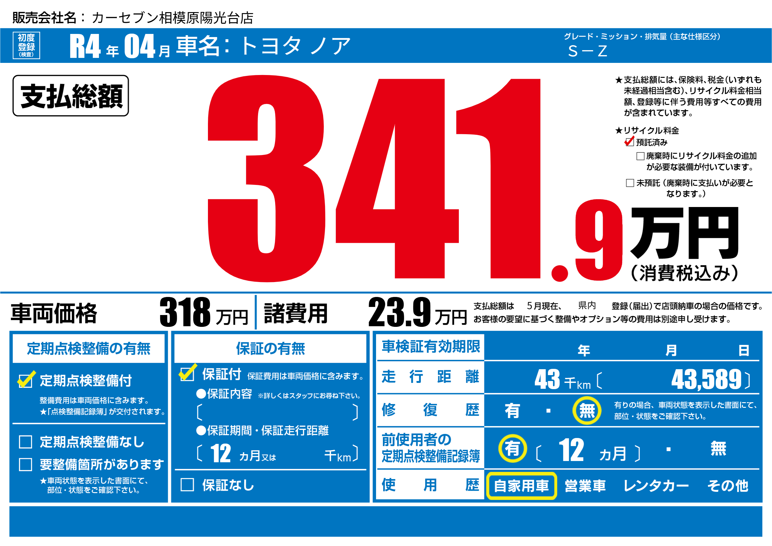 | 定期点検整備 | 定期点検整備あり | ||