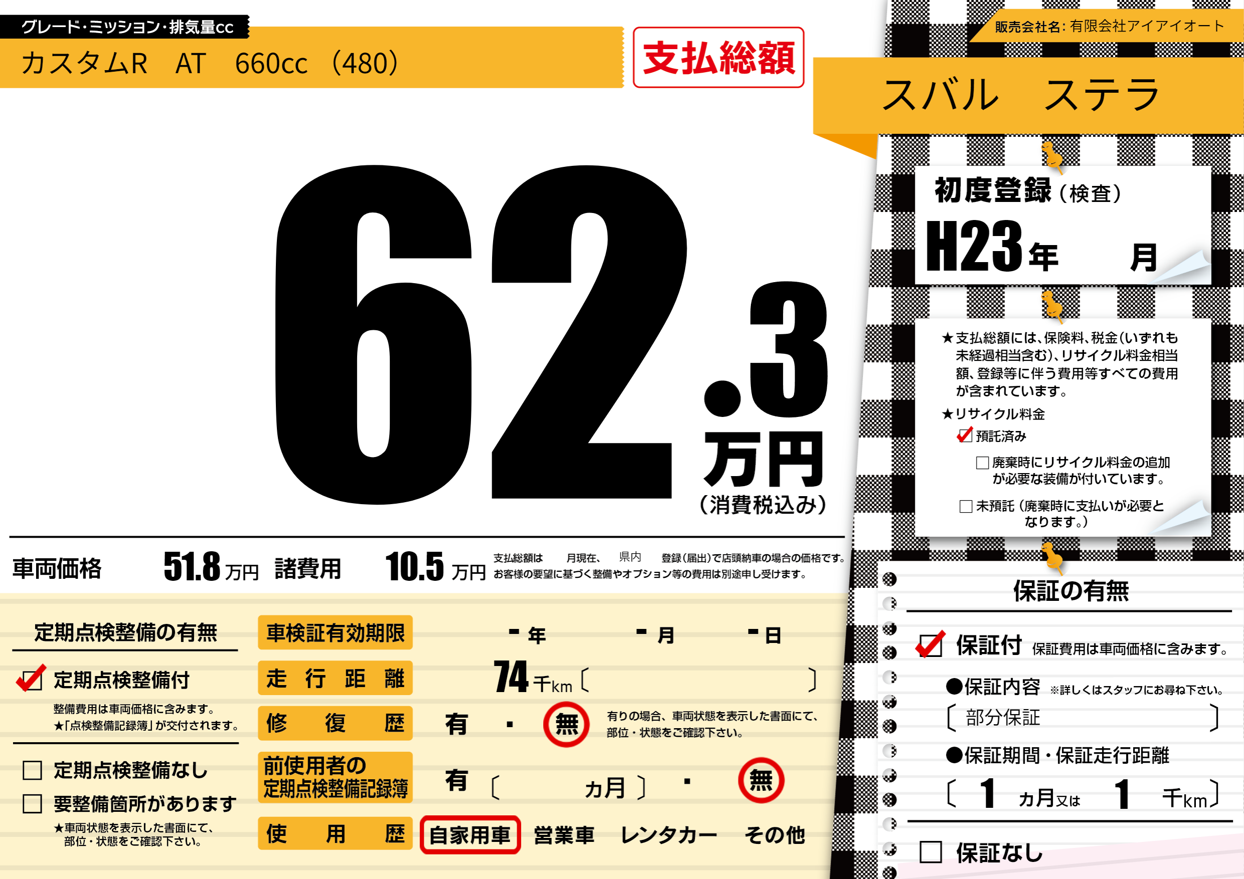 | 車名 | スバル ステラ | グレード ミッション 排気量 |