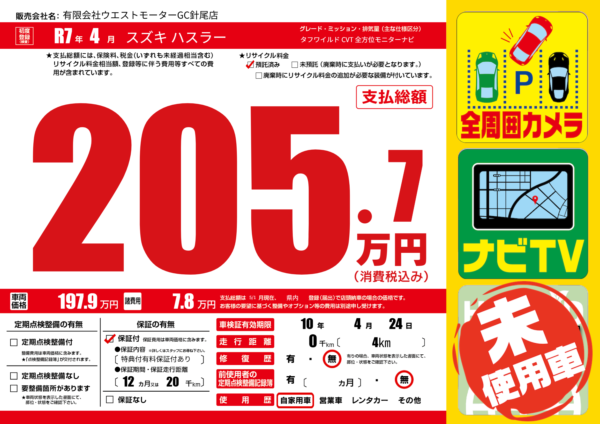 | 走行キロ | - | 初年度登録 | R7年4月 |
