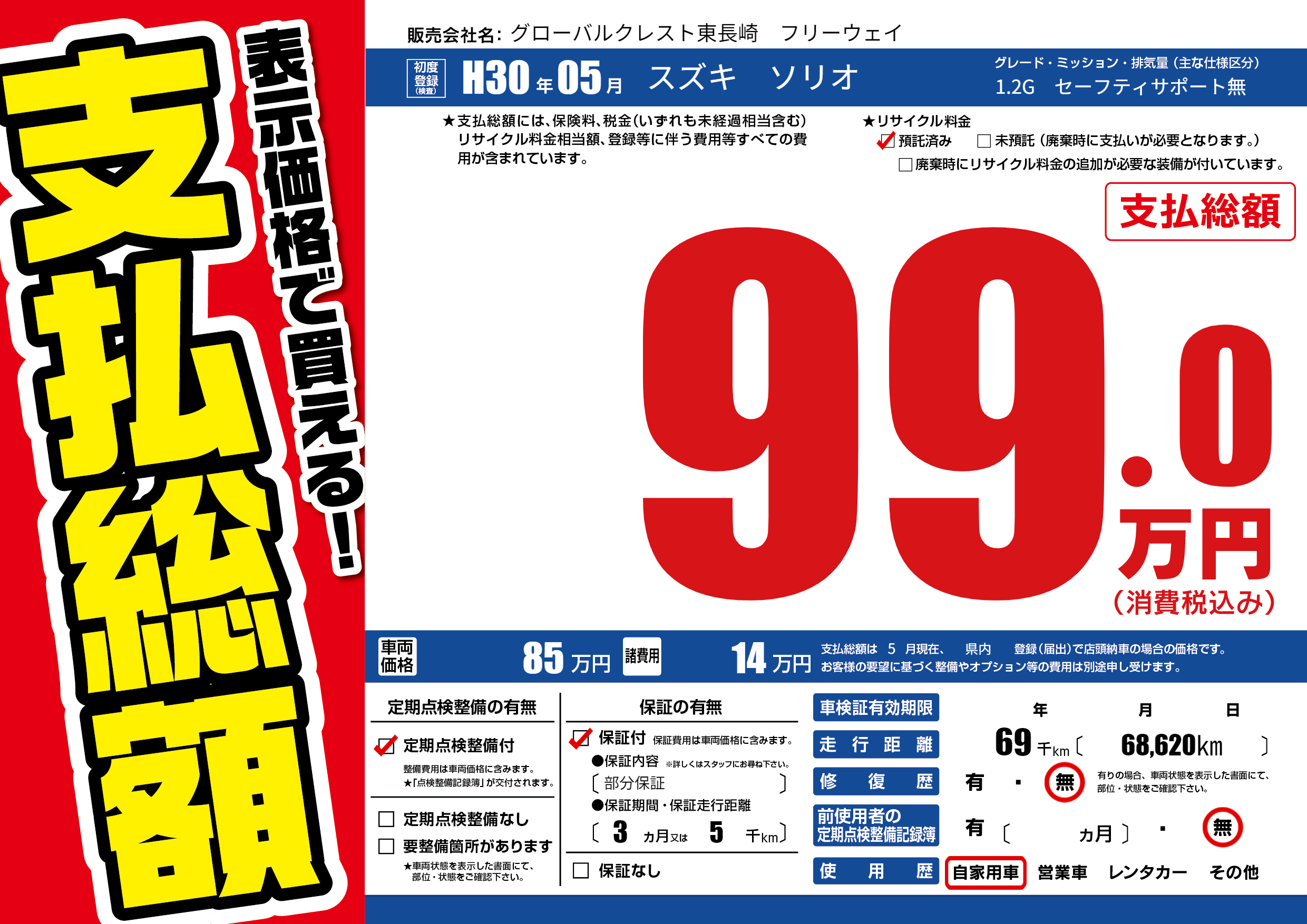 保証付き 保証内容(部分保証) 3ヶ月または(5)千kmまで |