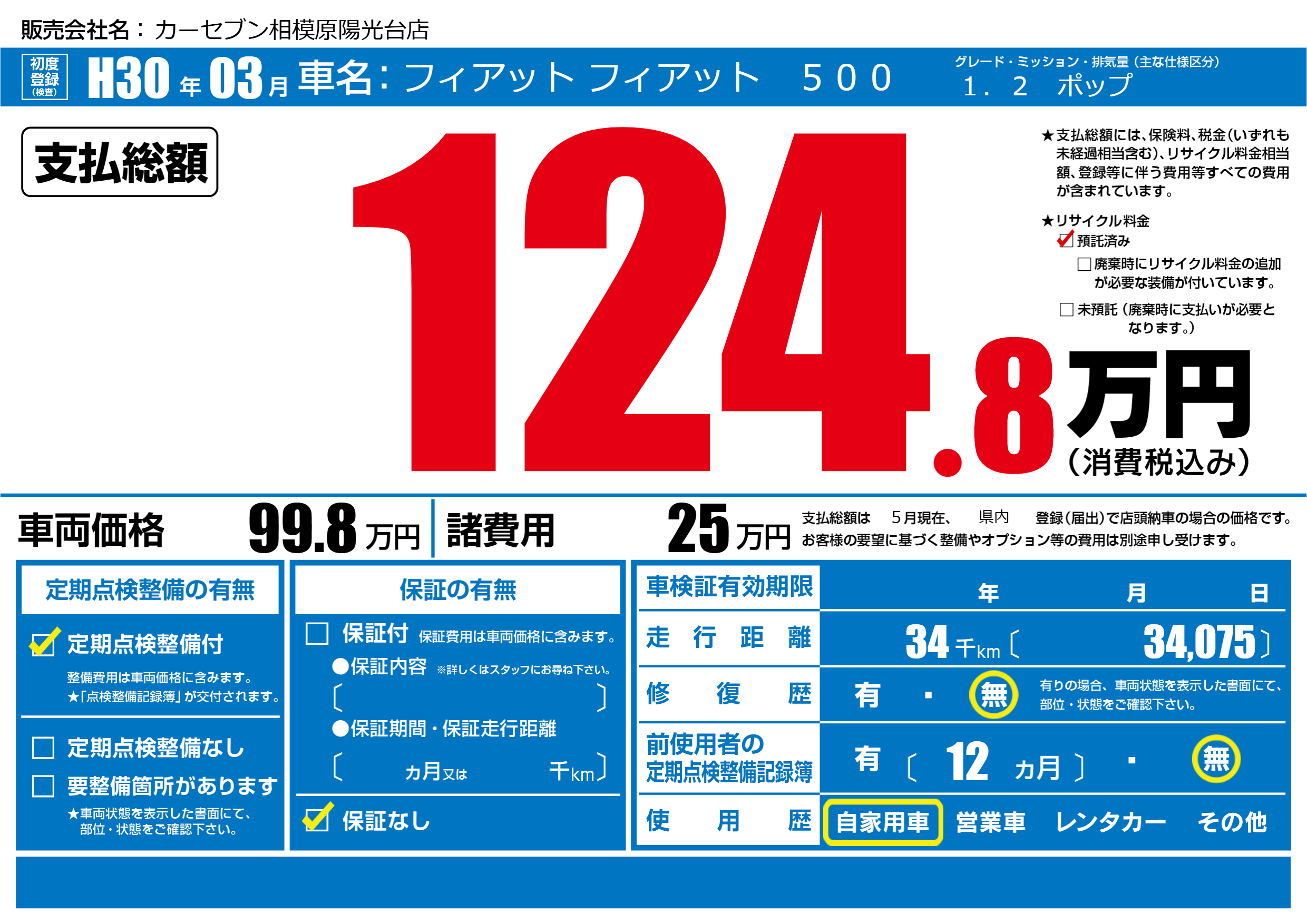 | 車名 | フィアット フィアット 500 | グレード ミッション 排気量 |
