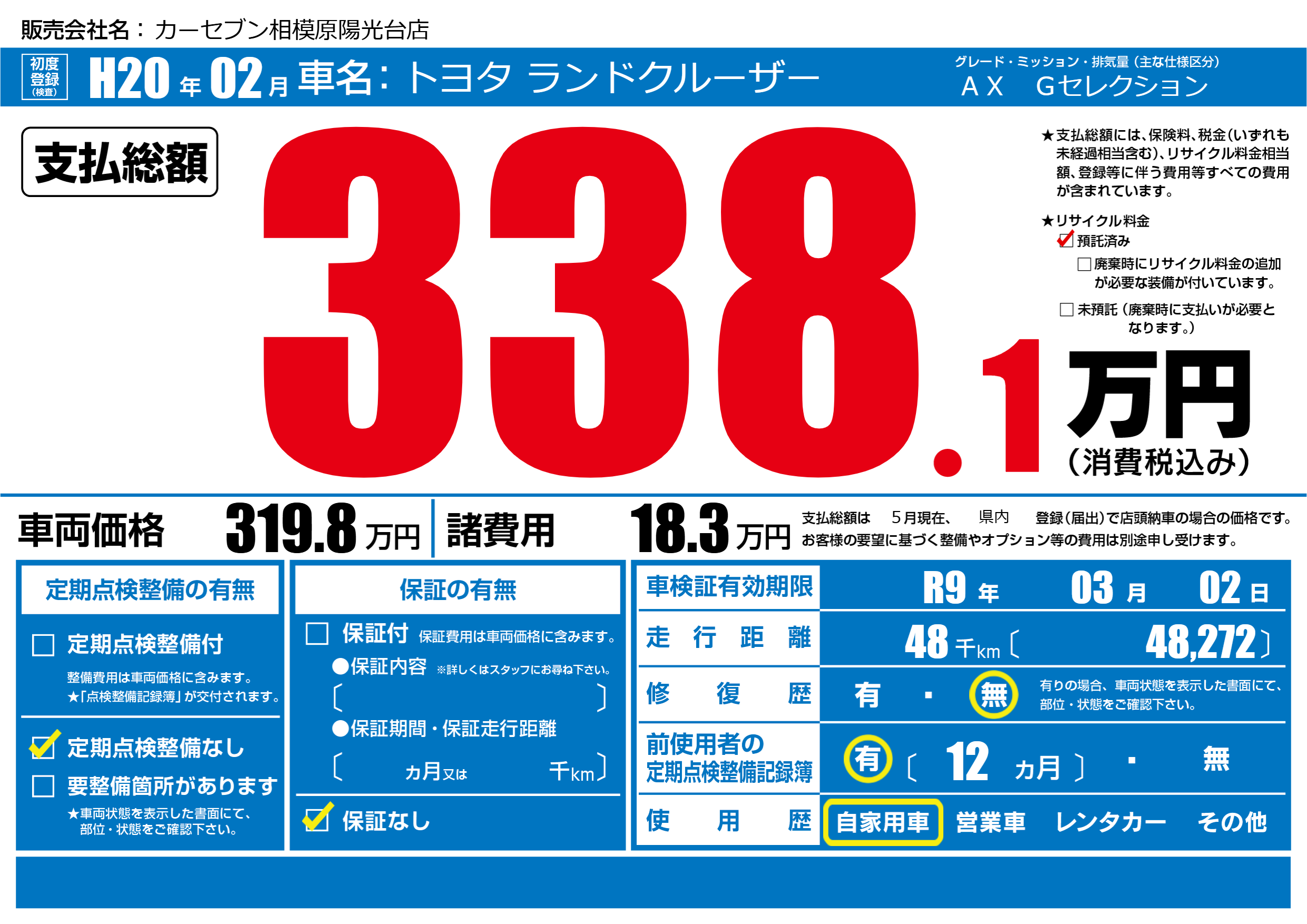 | 車検制限 | R9年 03月 02日 | ||