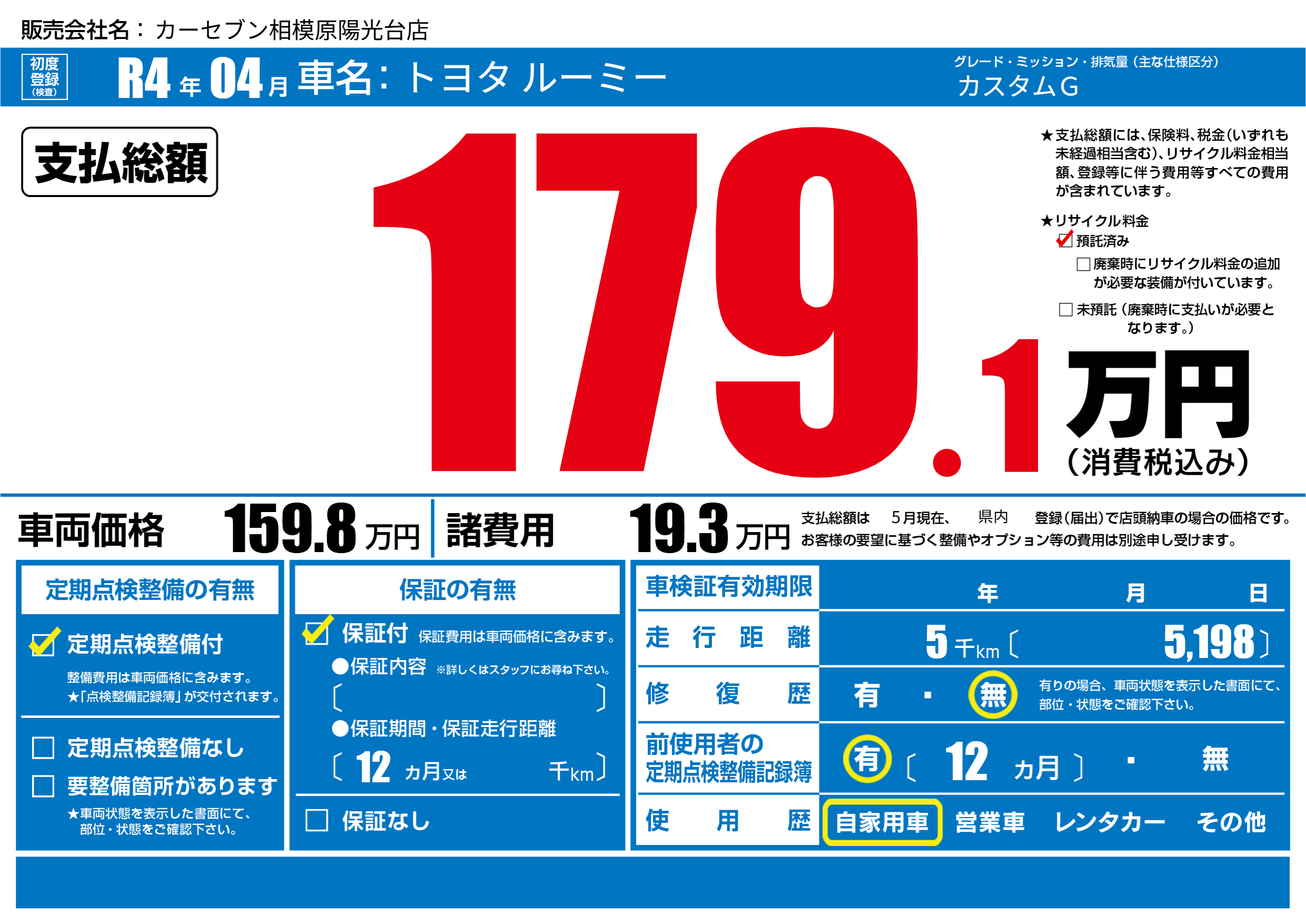 | 定期点検整備 | 定期点検整備あり | ||