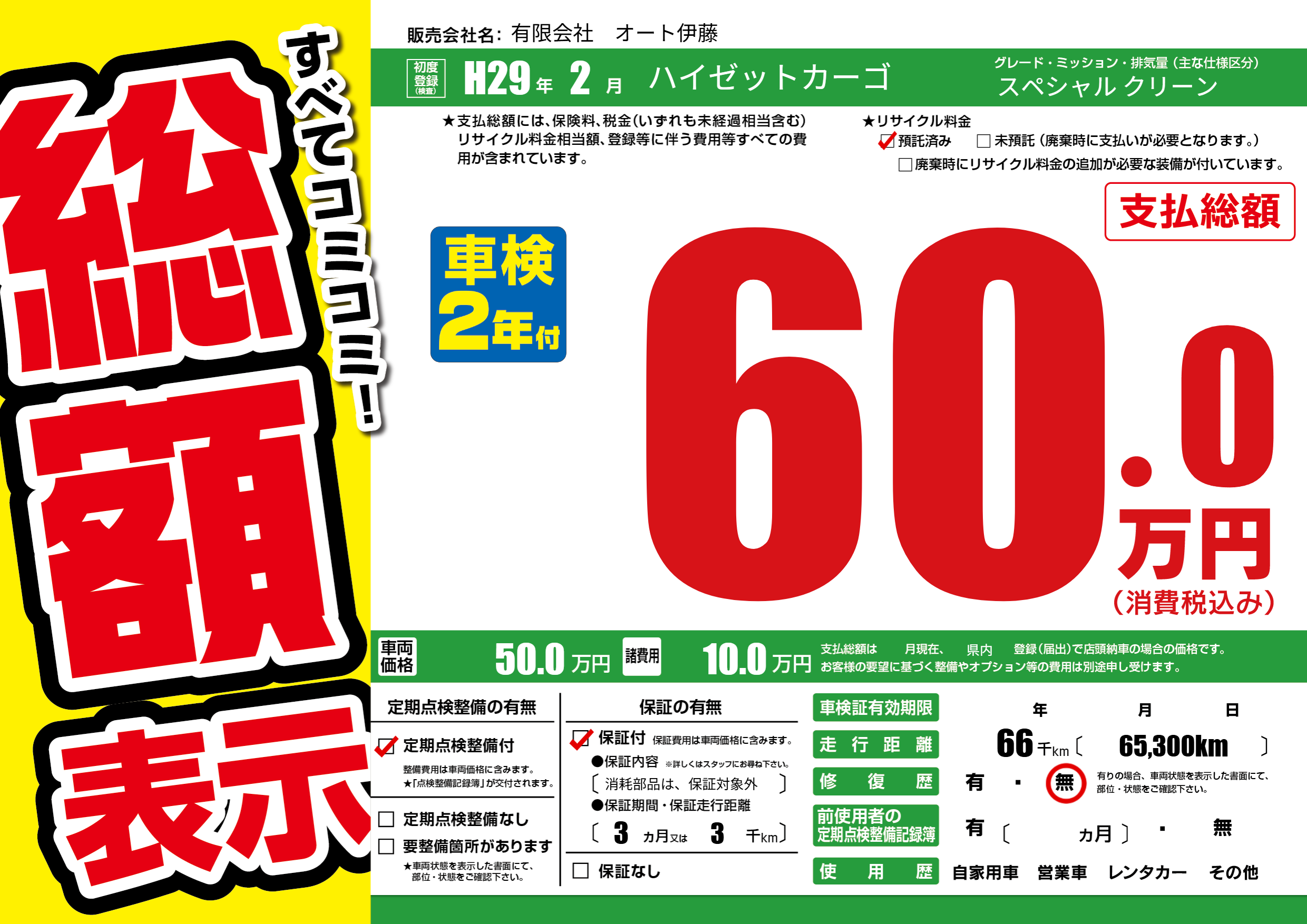 定期点検整備 | 定期点検整備あり |