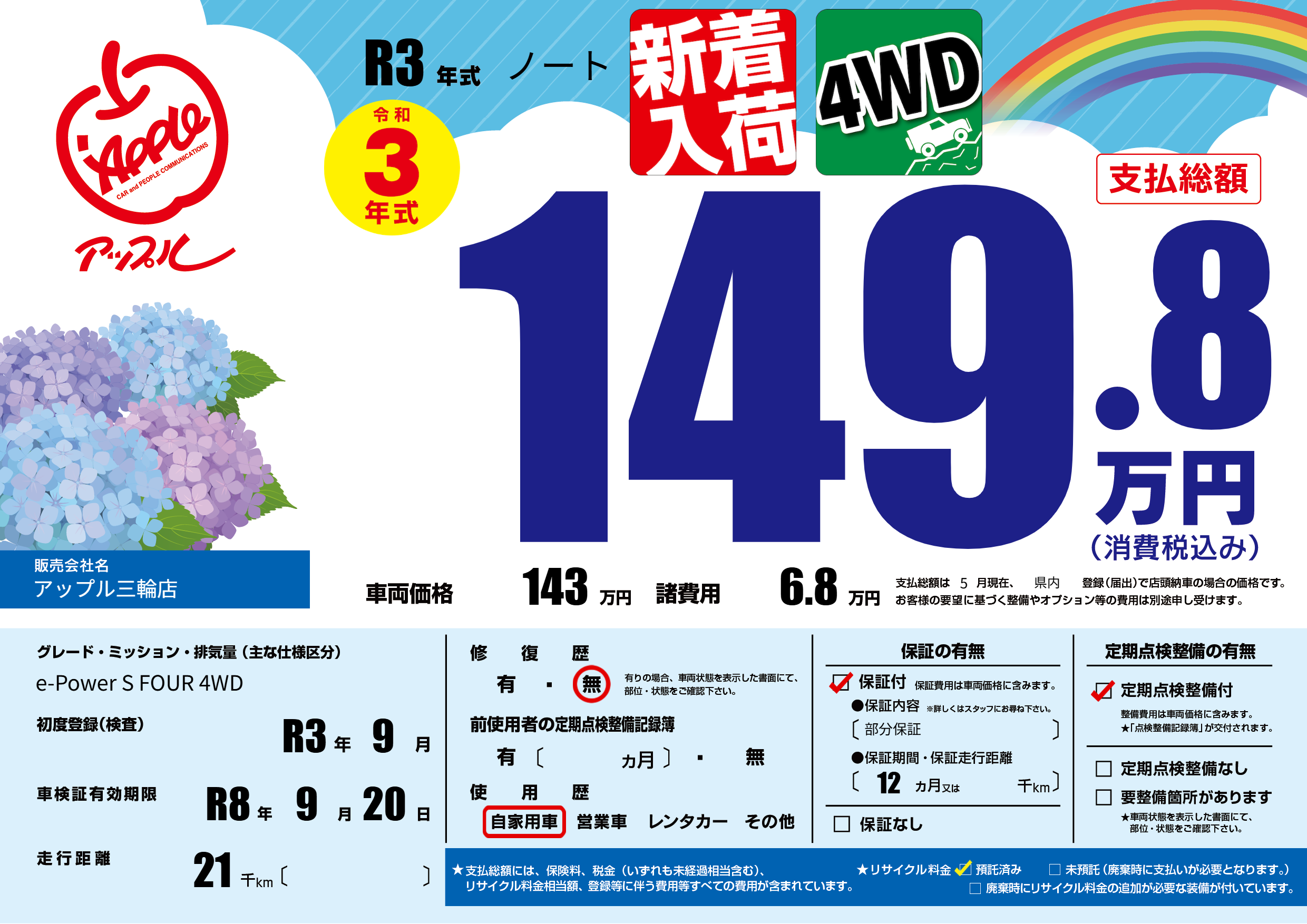 | 初年度登録 | R3年9月 | ||