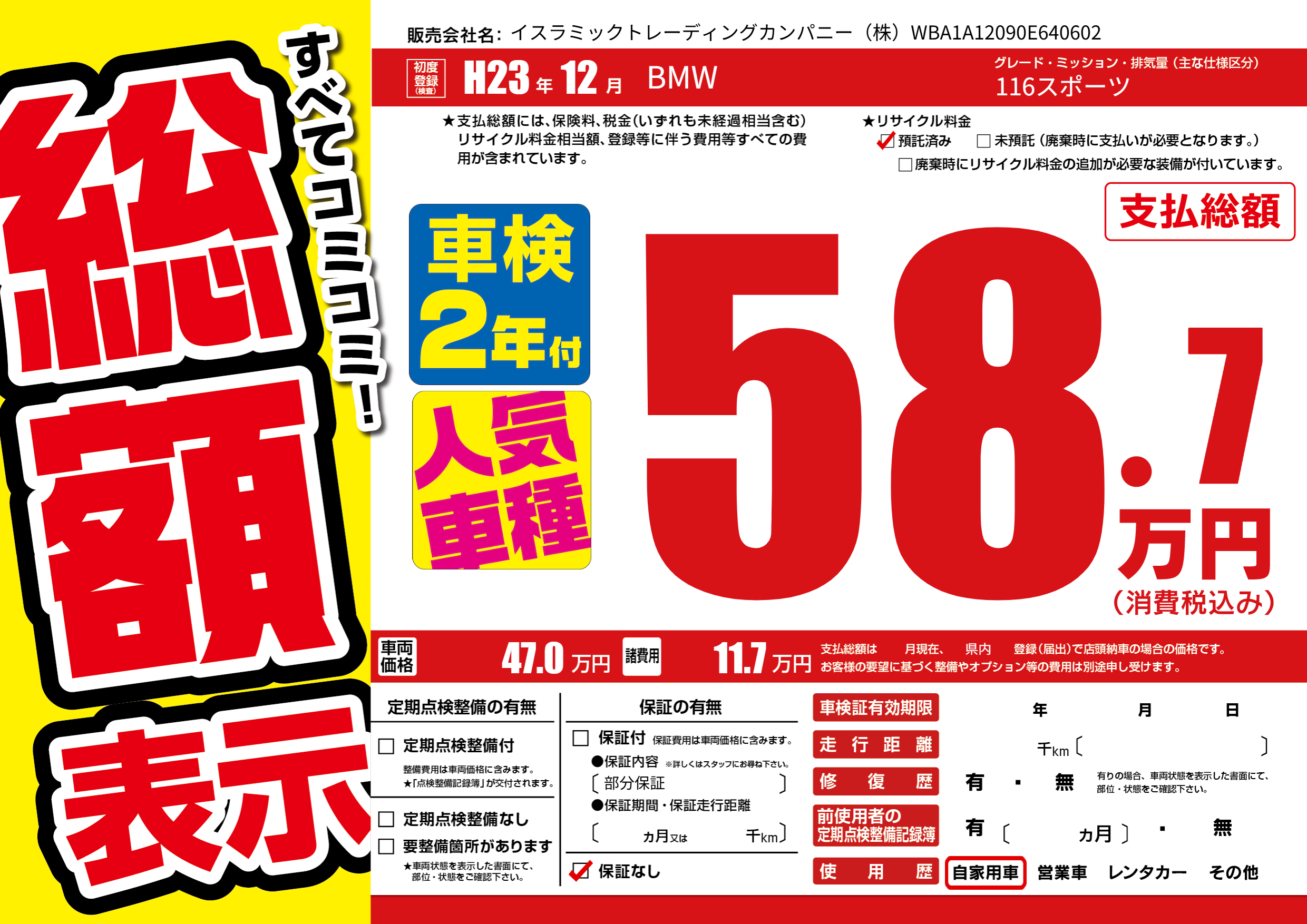 | 車検制限 | - 年 - 月 - 日 | ||