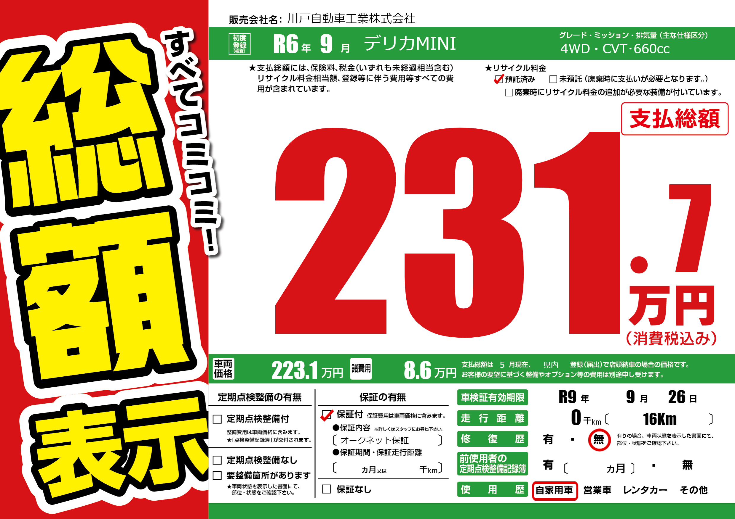 | 走行キロ | - | 初年度登録 | R6年9月 |