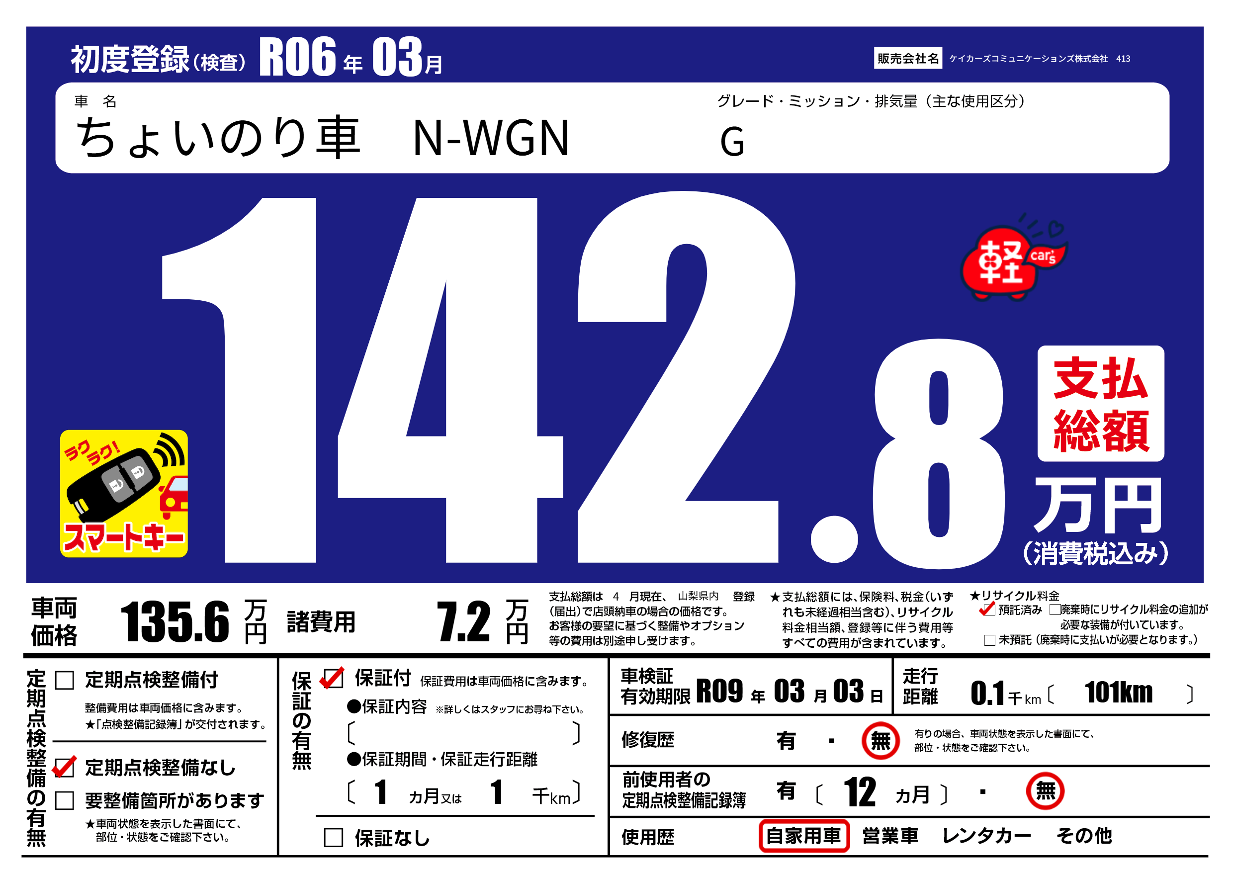 | 走行キロ | - | 初年度登録 | R06年03月 |