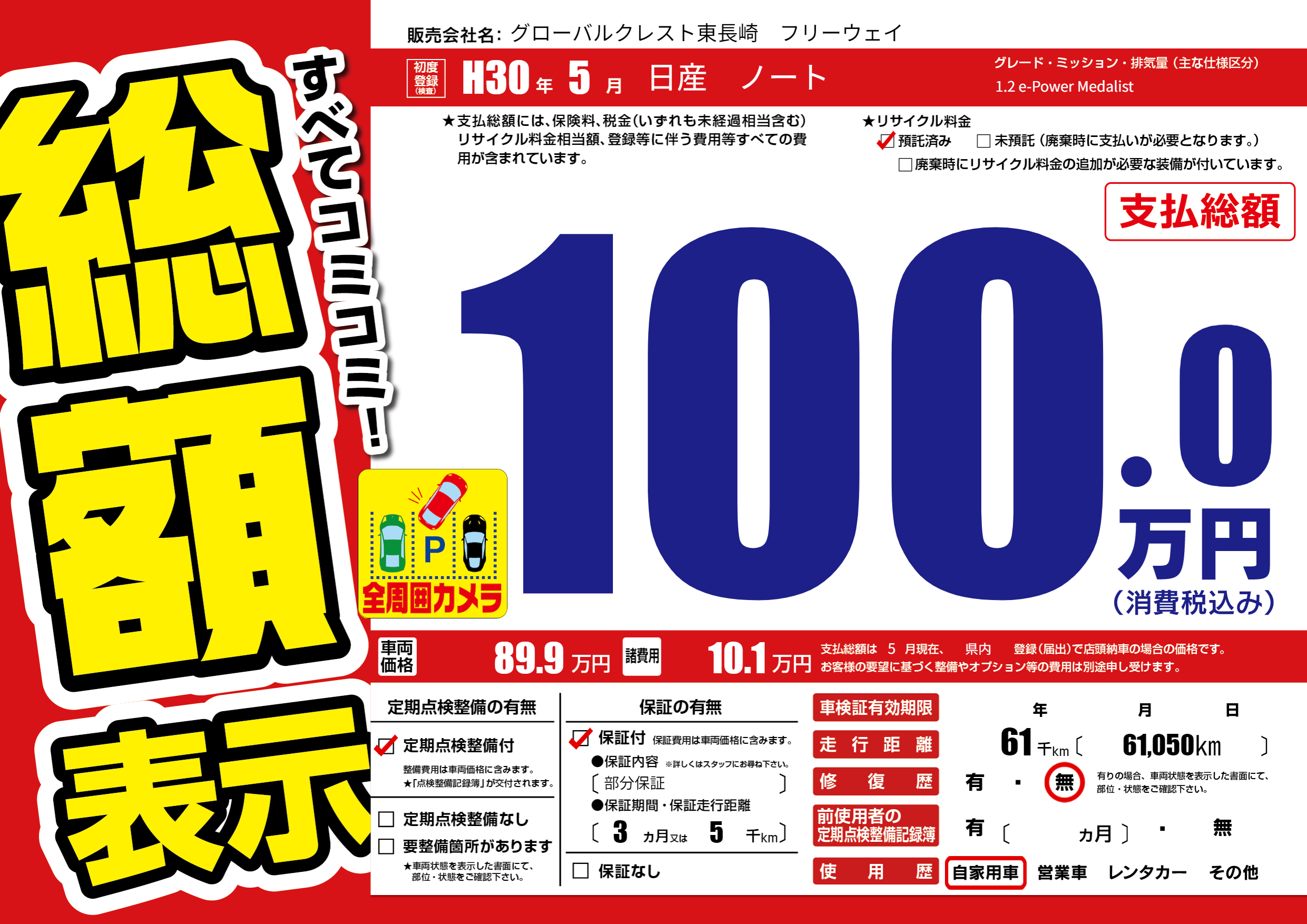 保証付き 保証内容(部分保証) 3ヶ月または(5)千kmまで |