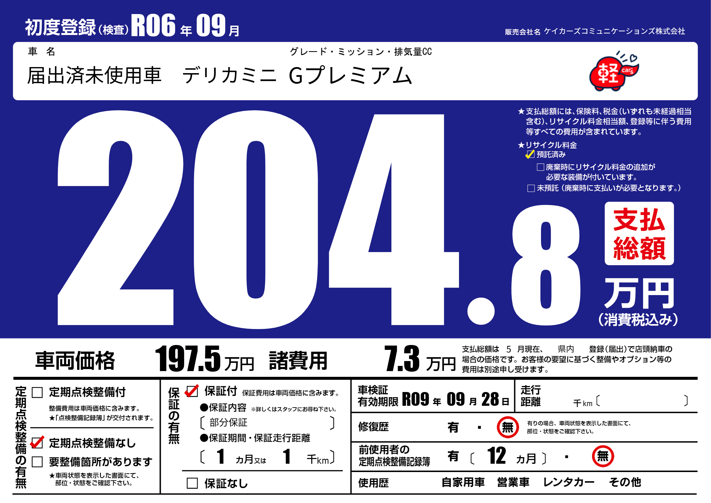 | 走行キロ | - | 初年度登録 | R06年09月 |