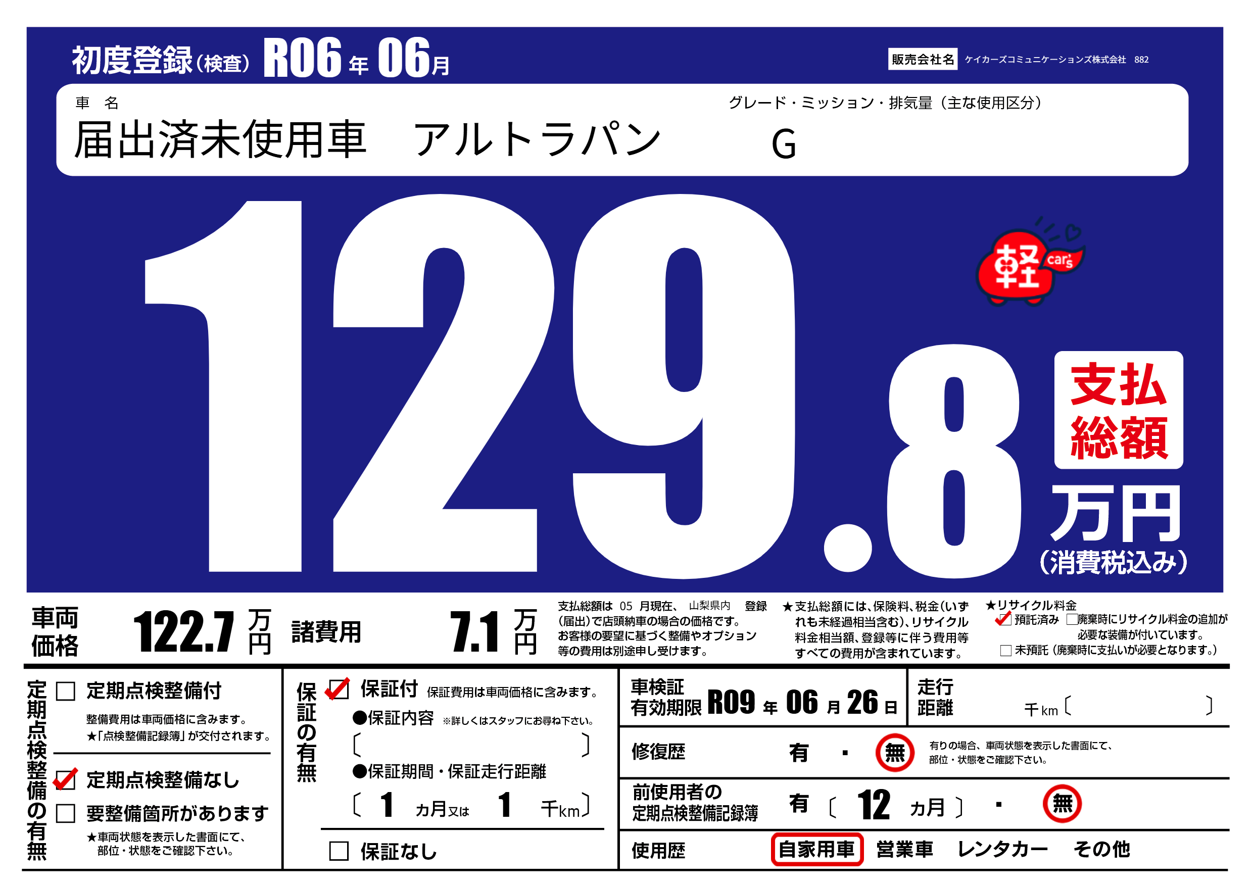 | 走行キロ | - | 初年度登録 | R06年06月 |