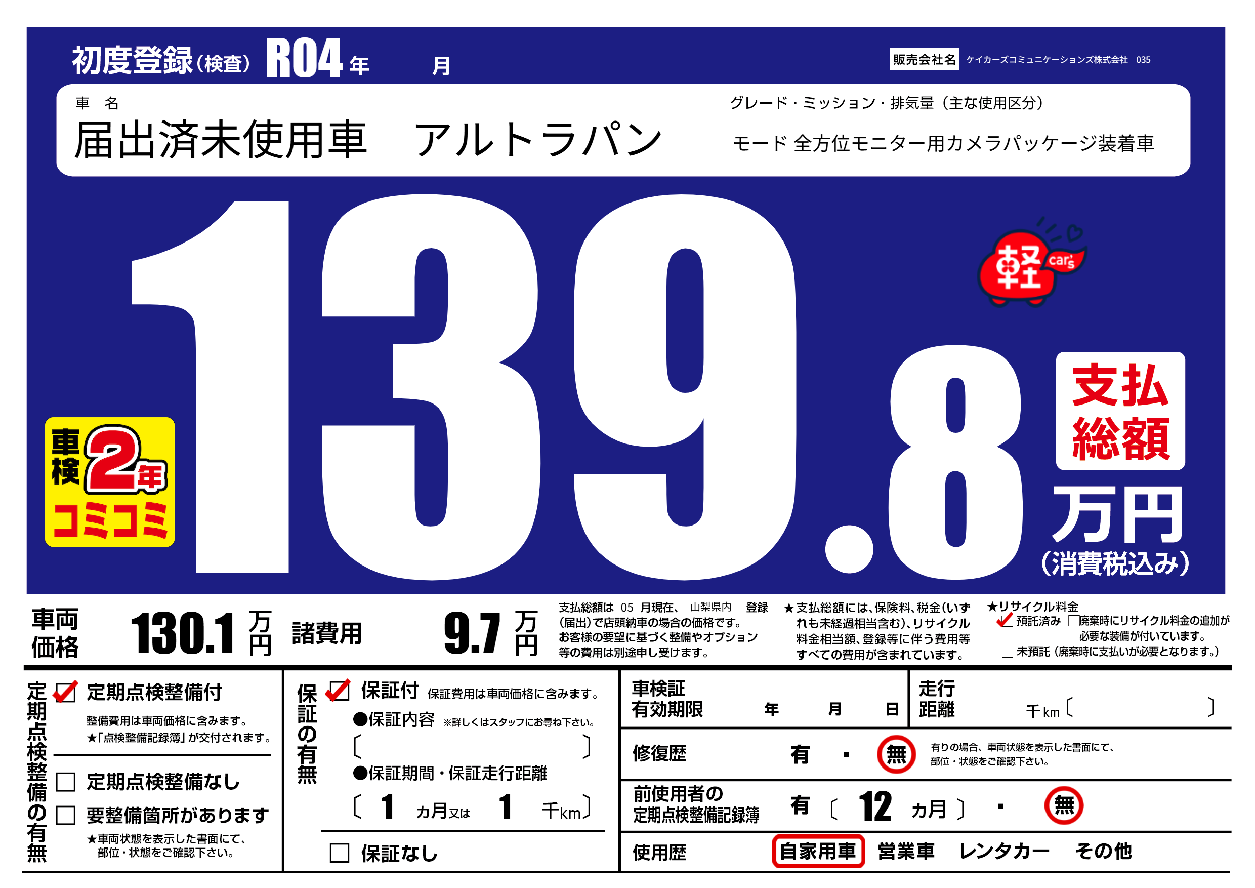| 初年度登録 | R04年 | ||