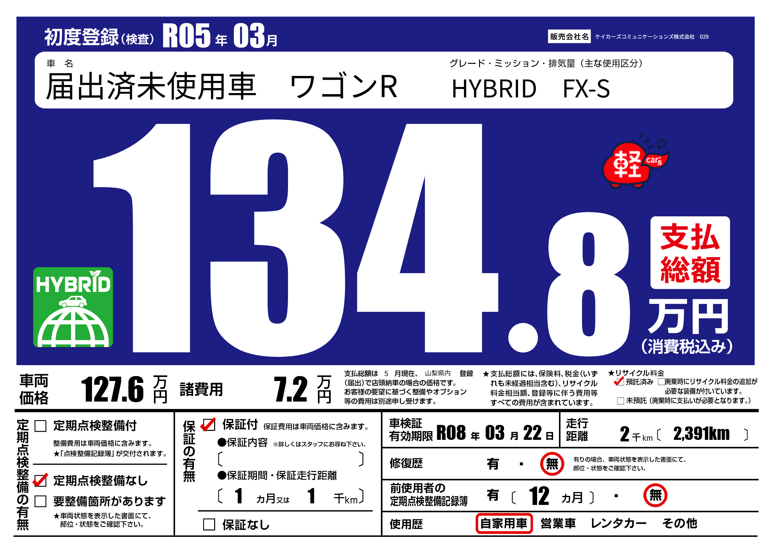 なし | 車検制限 | R08年03月22月 |