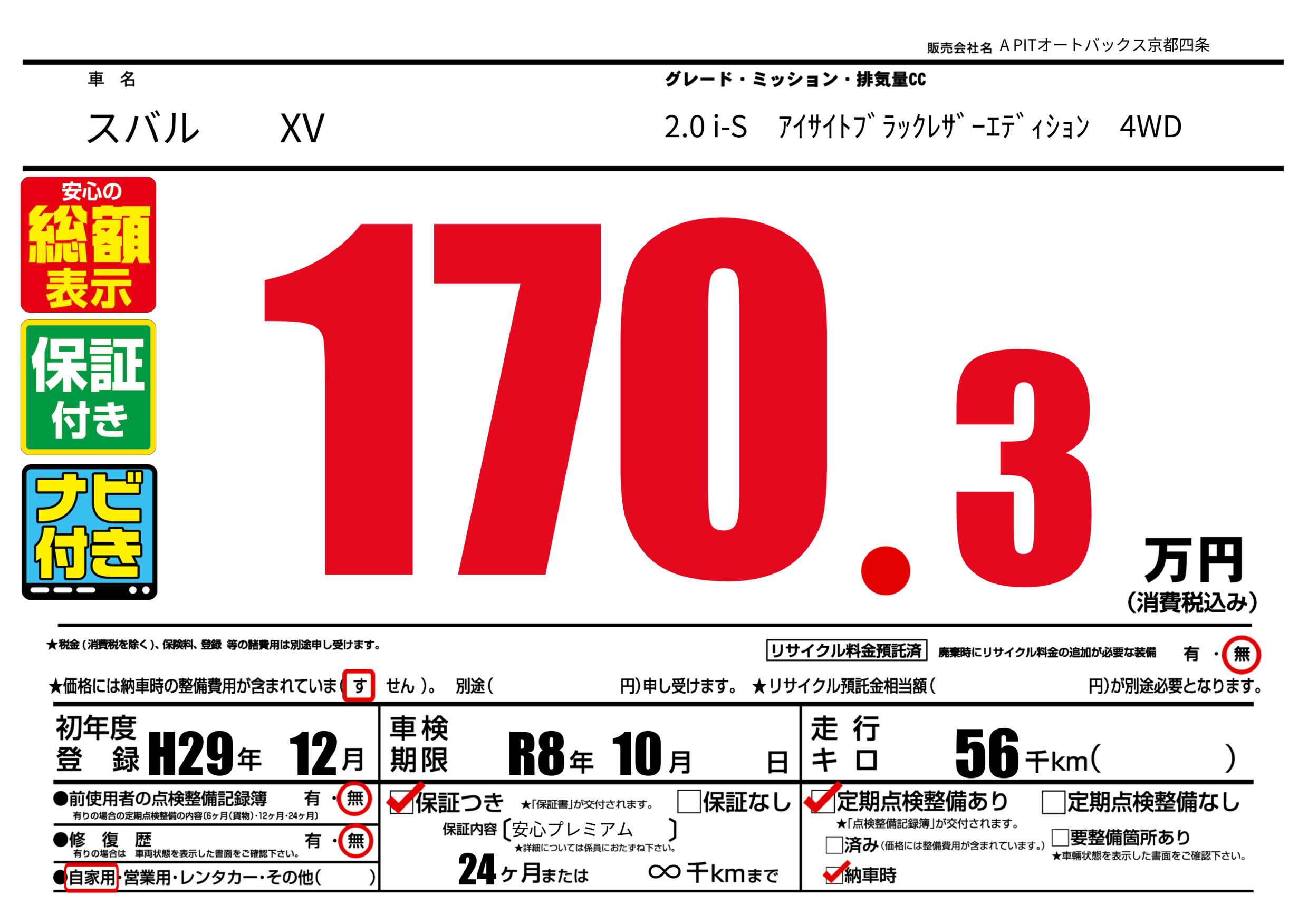 | 車検制限 | R8年 10月 - 日 | ||