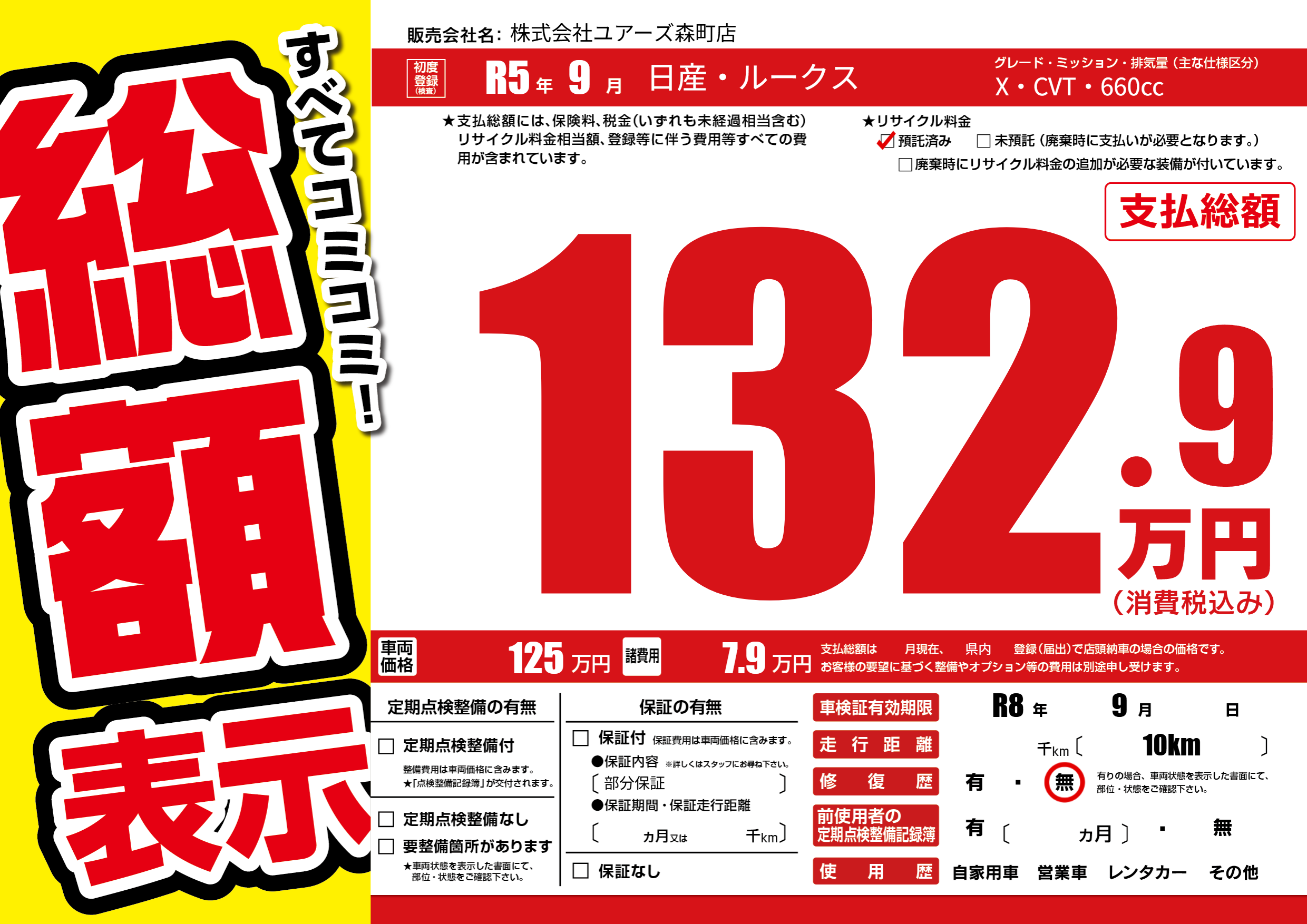 なし | 車検制限 | R8年9月---月 |