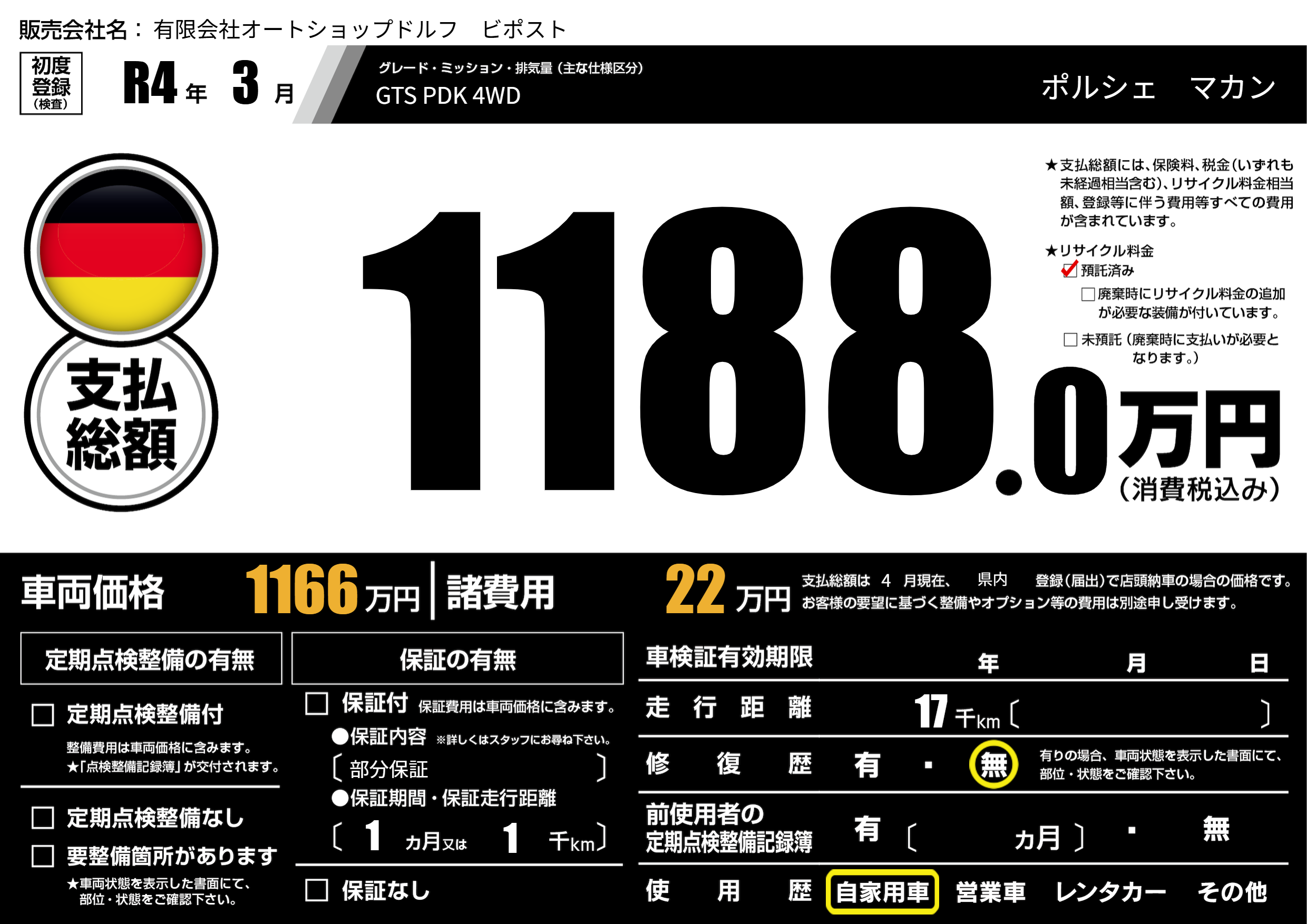 | 車名 | ポルシェ マカン | グレード ミッション 排気量 |