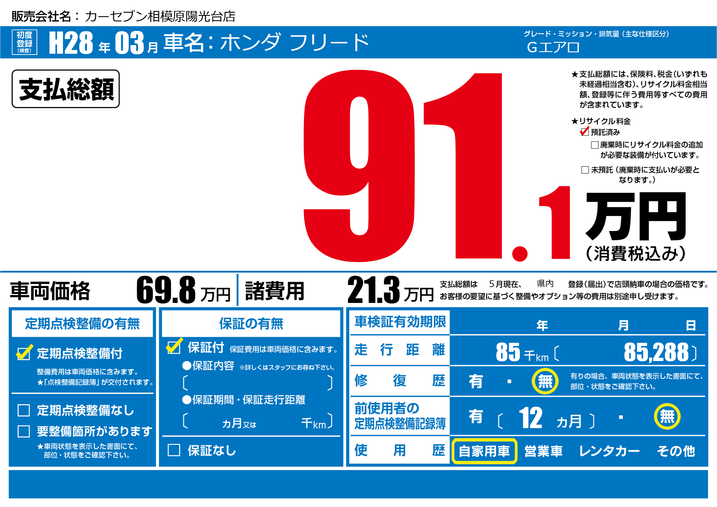 | 定期点検整備 | 定期点検整備あり | ||