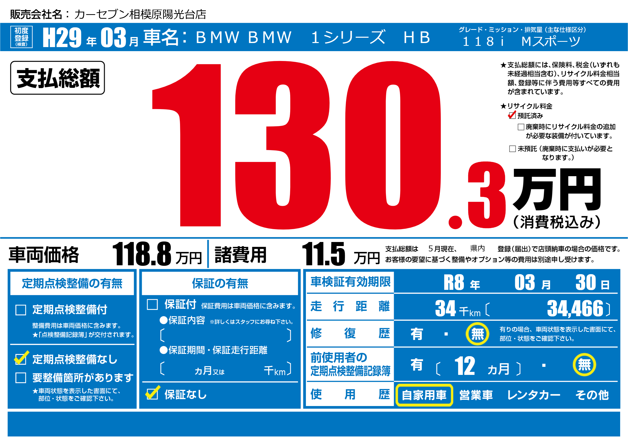 なし | 車検制限 | R8年03月30月 |