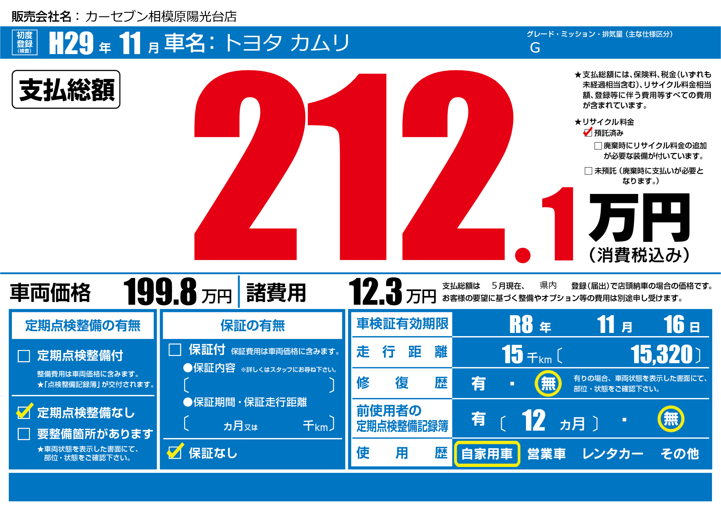 | 定期点検整備 | 定期点検整備なし | ||