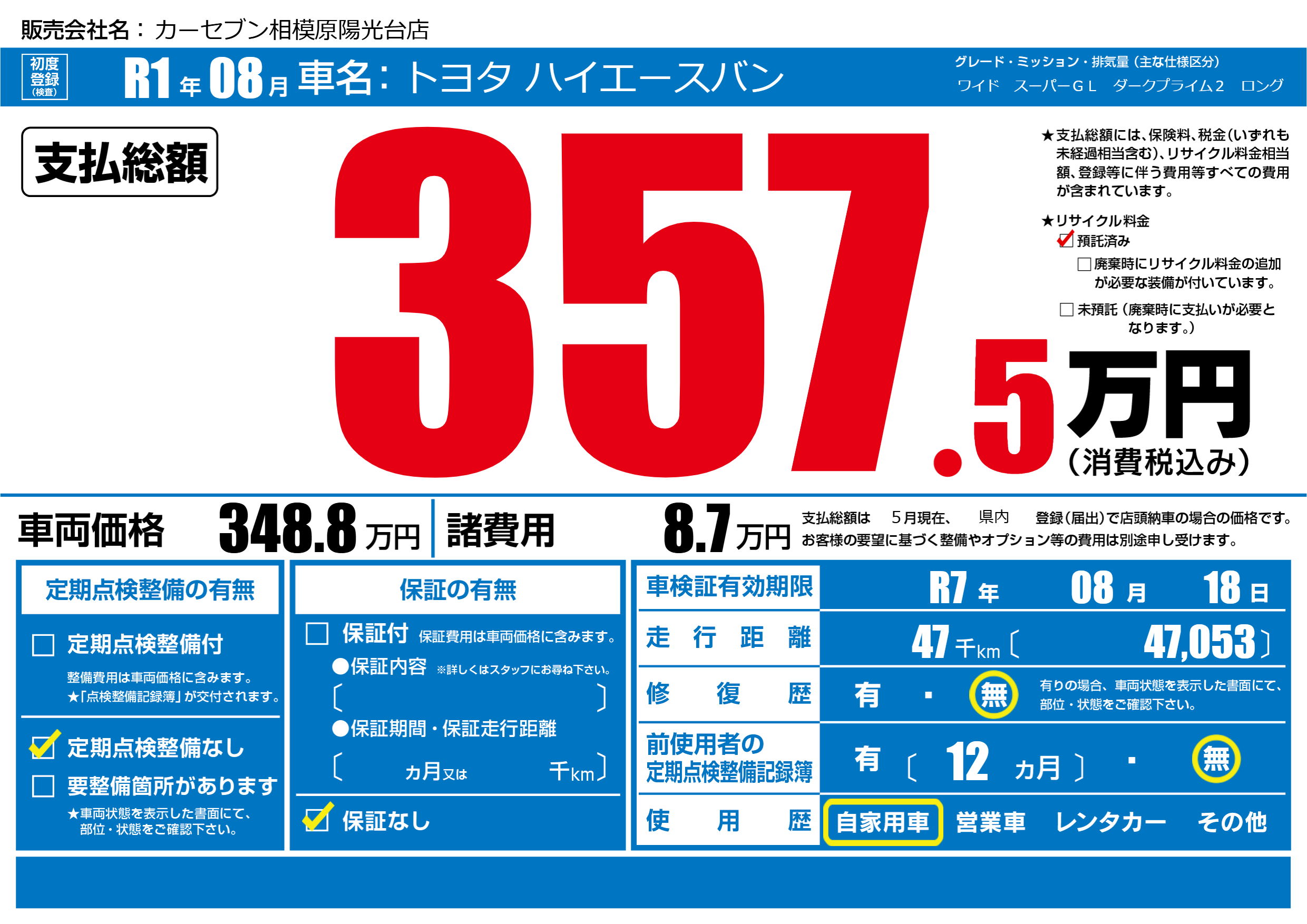 なし | 車検制限 | R7年08月18月 |
