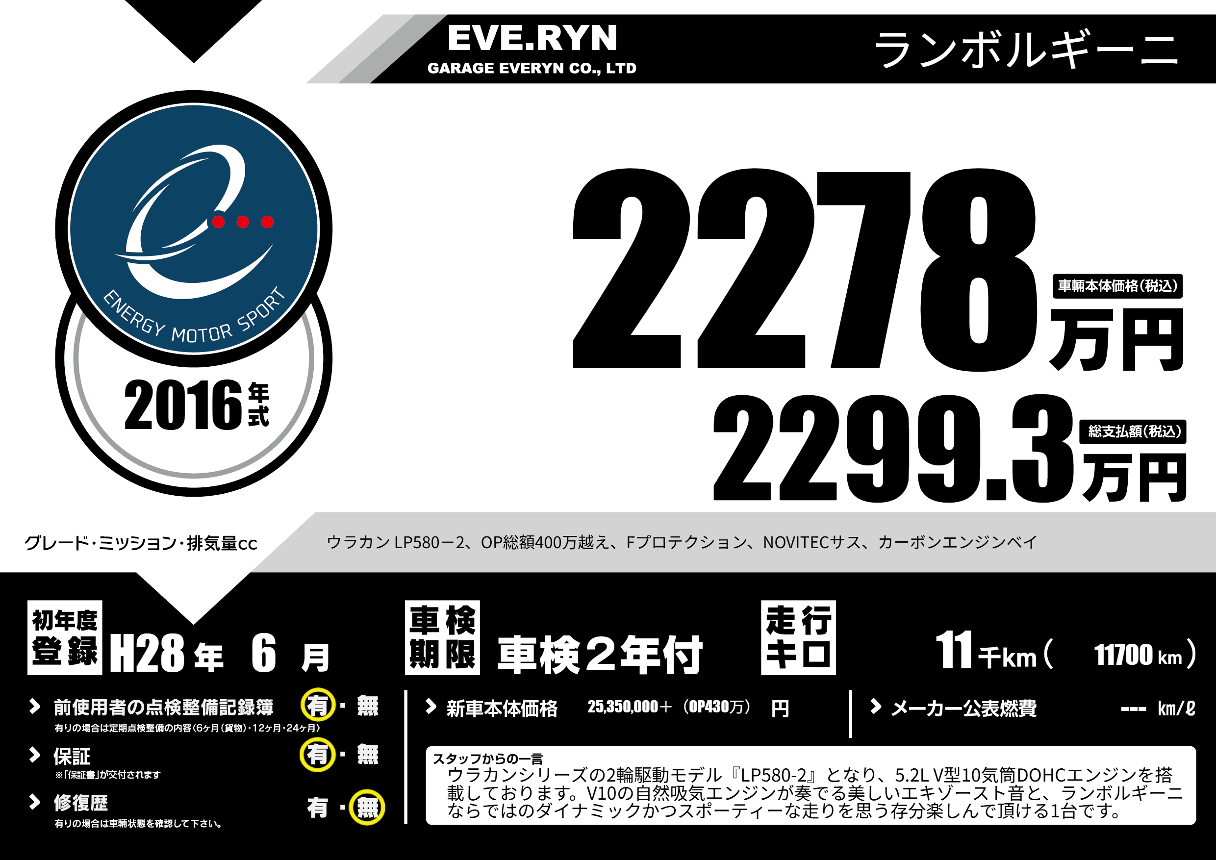 ウラカン LP580-2、OP総額400万越え、Fプロテクション、NOVITECサス、カーボンエンジンベイ |