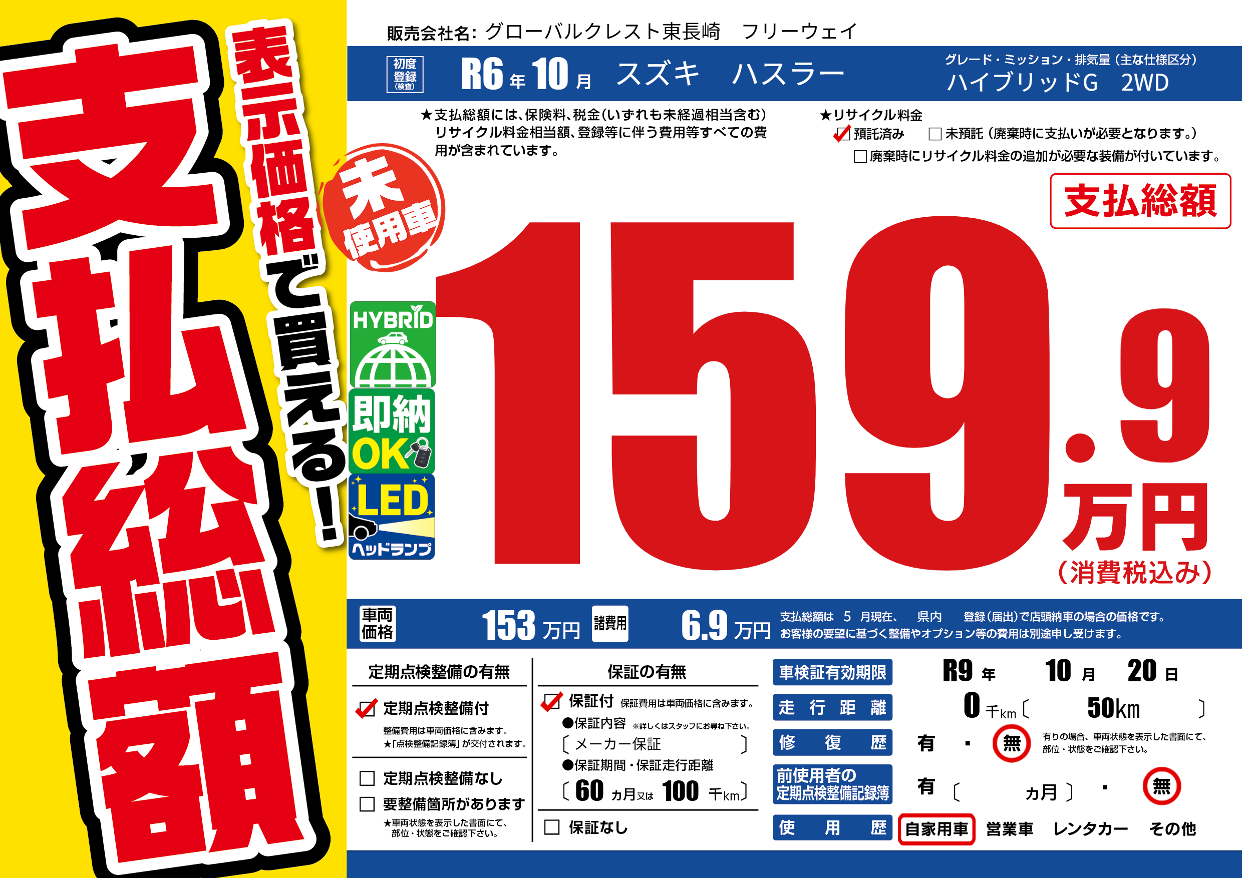 | 走行キロ | - | 初年度登録 | R6年10月 |