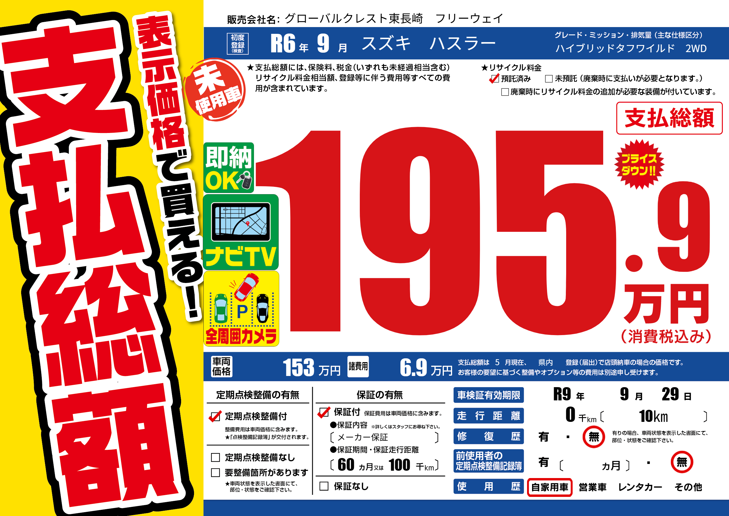 | 走行キロ | - | 初年度登録 | R6年9月 |