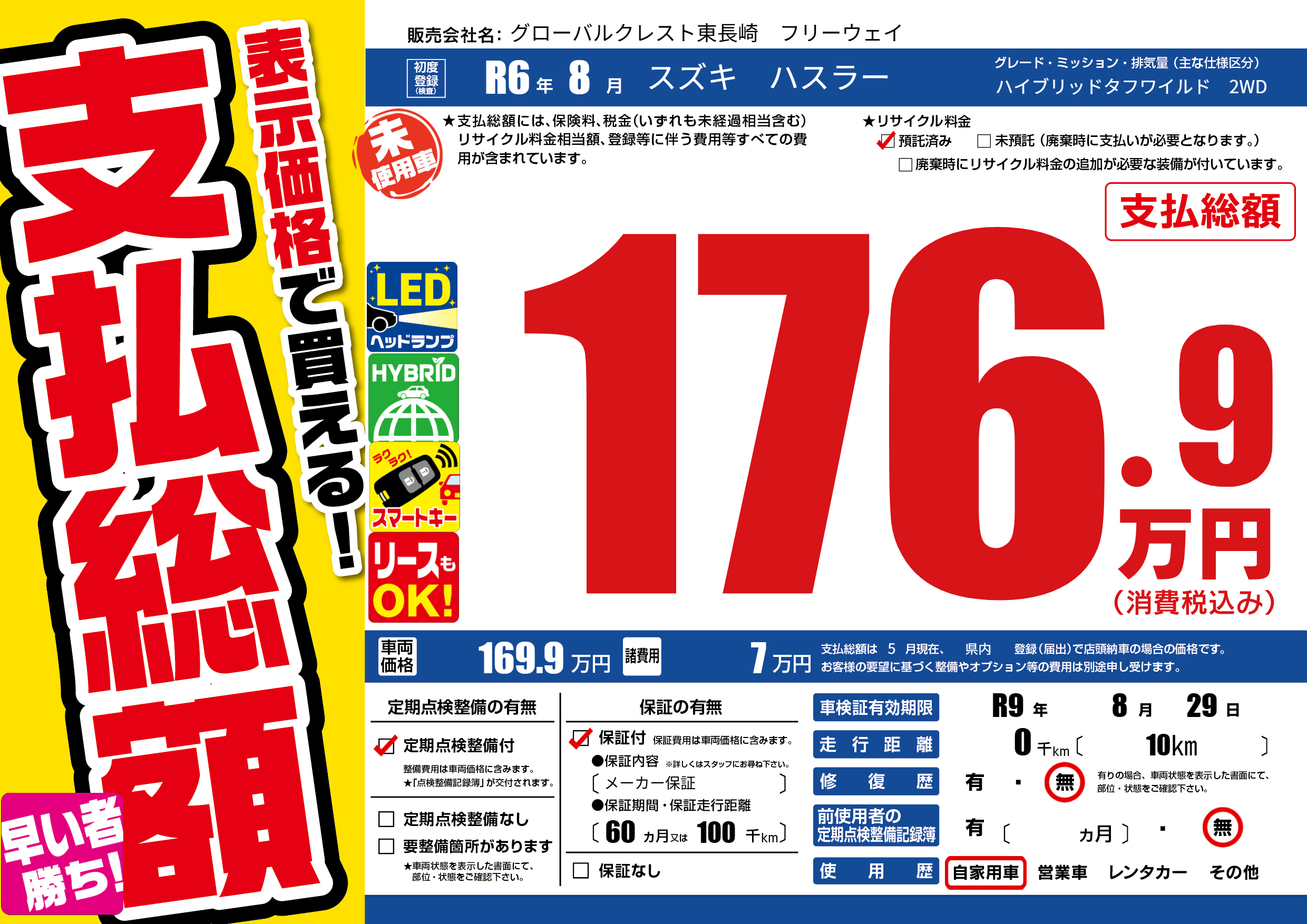 | 走行キロ | - | 初年度登録 | R6年8月 |