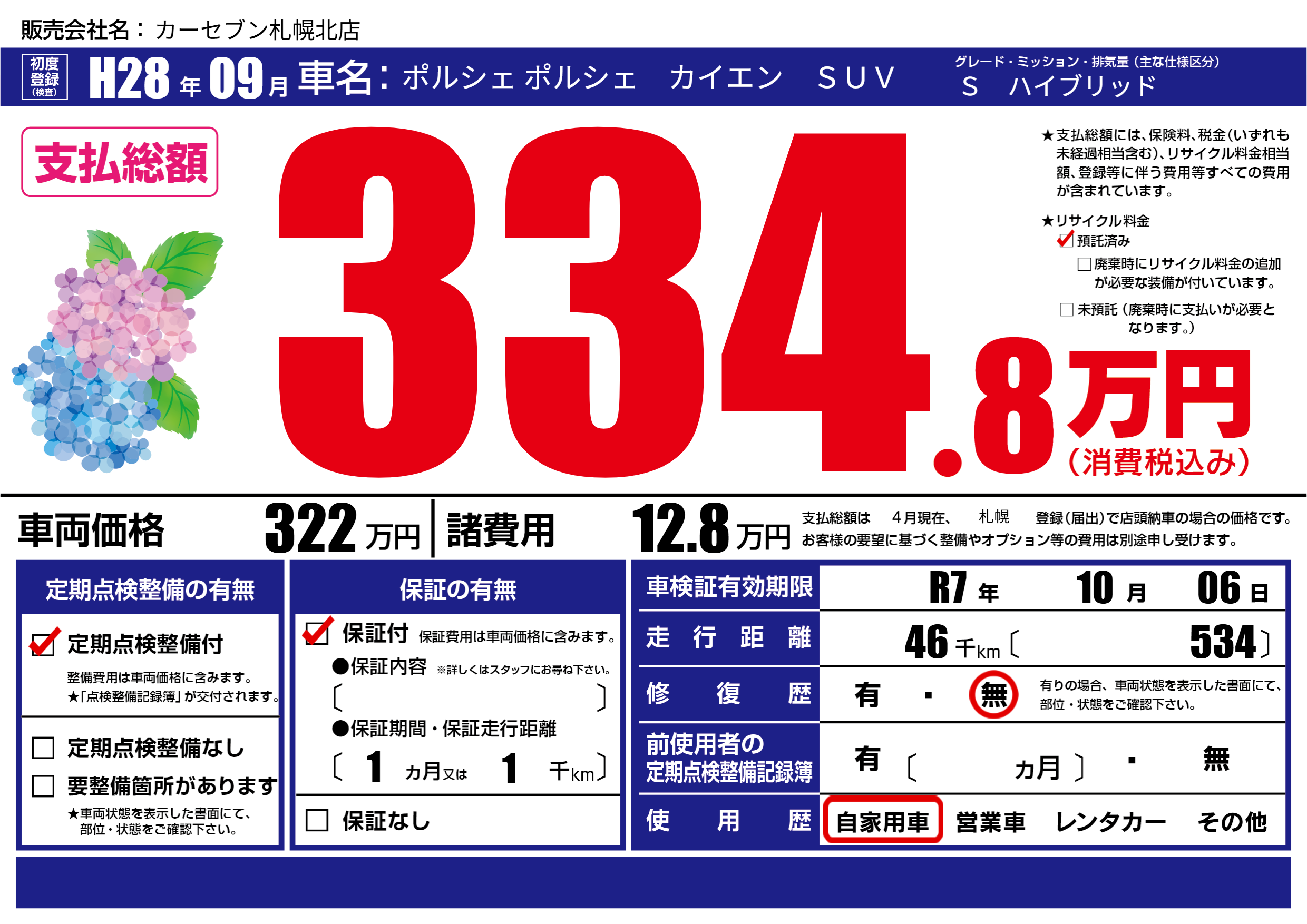 | 車名 | ポルシェ ポルシェ カイエン SUV | グレード ミッション 排気量 |