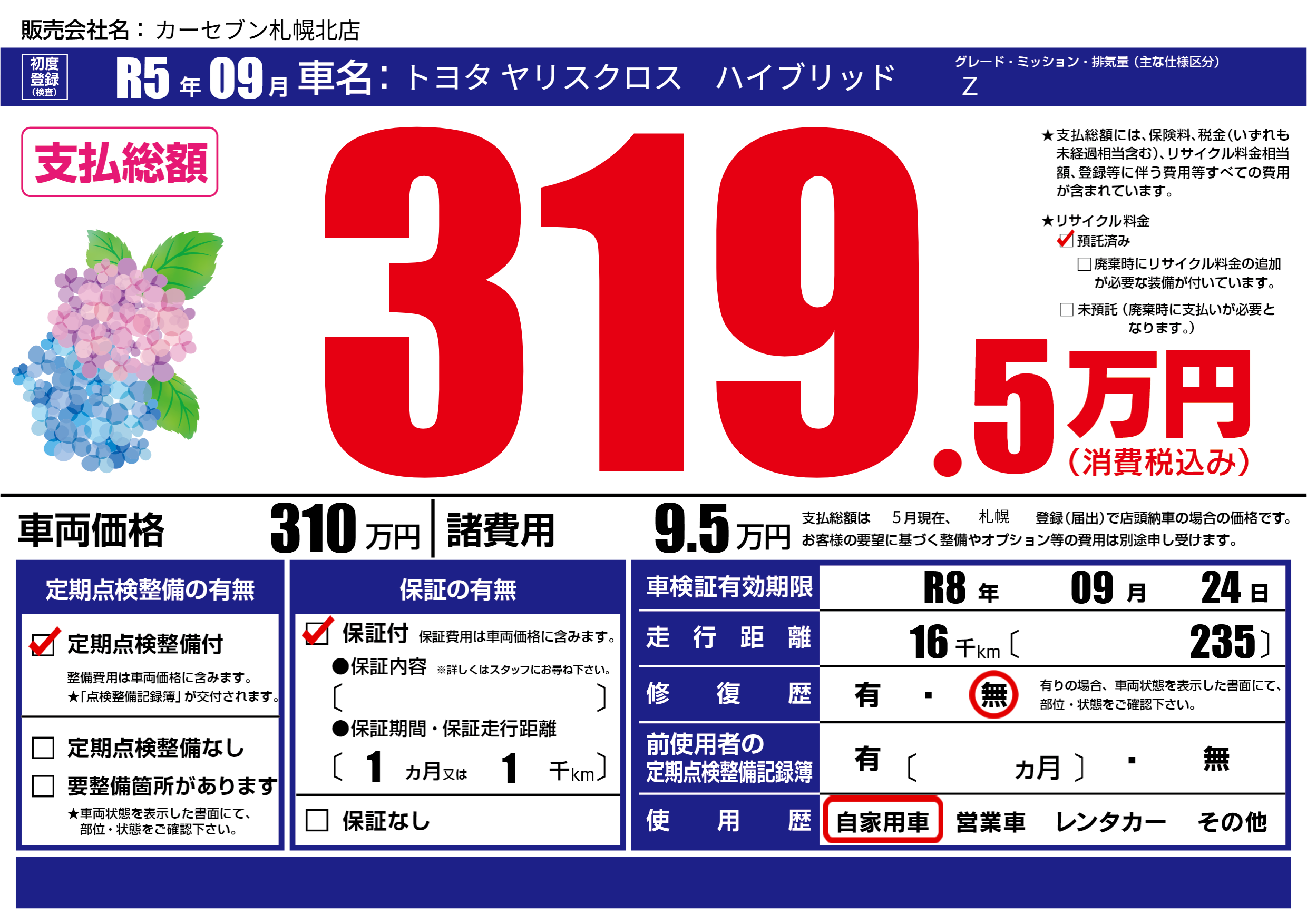 | 走行キロ | 1.6万km | 初年度登録 | R5年09月 |