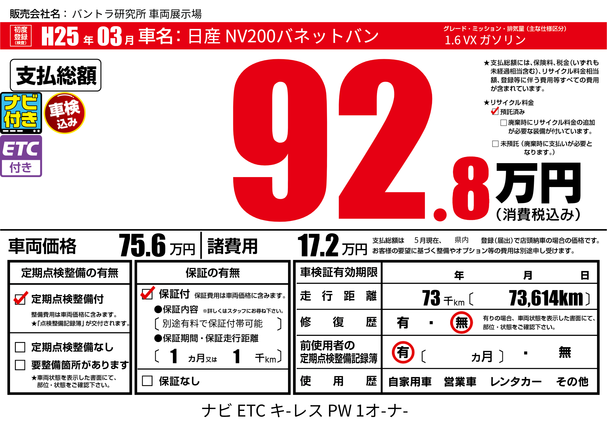 | 定期点検整備 | 定期点検整備あり | ||