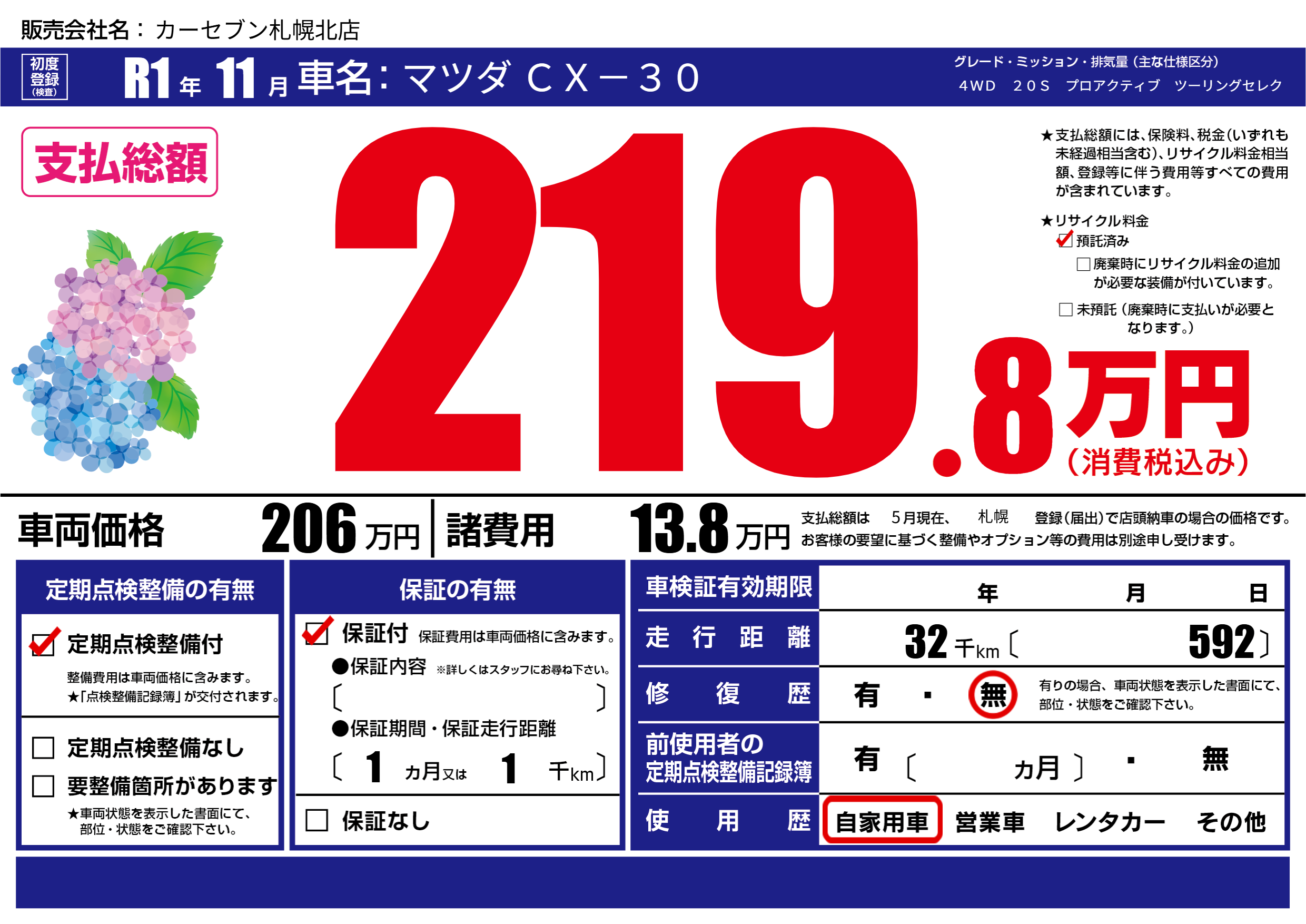 | 車名 | マツダ CX-30 | グレード ミッション 排気量 |