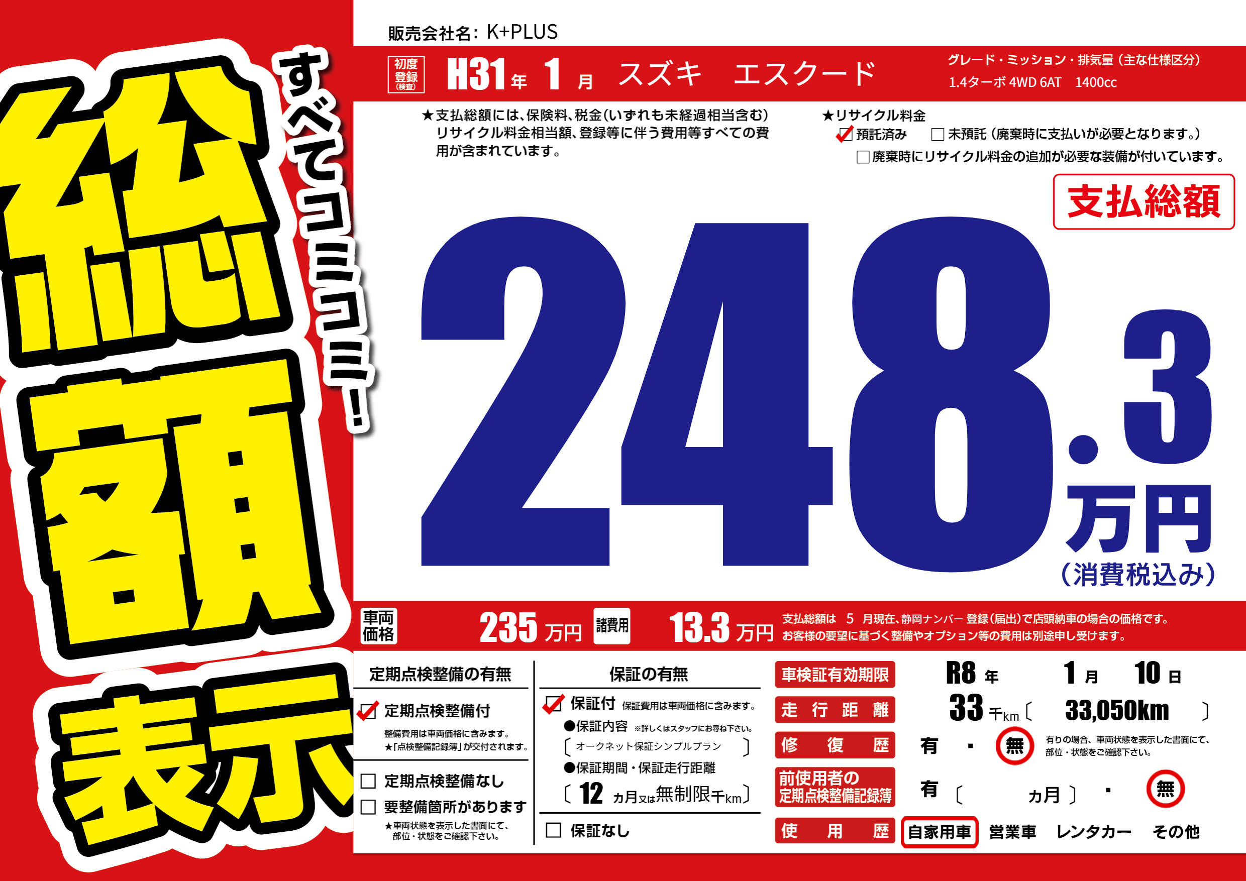 | 車検制限 | R8年 1月 10日 | ||