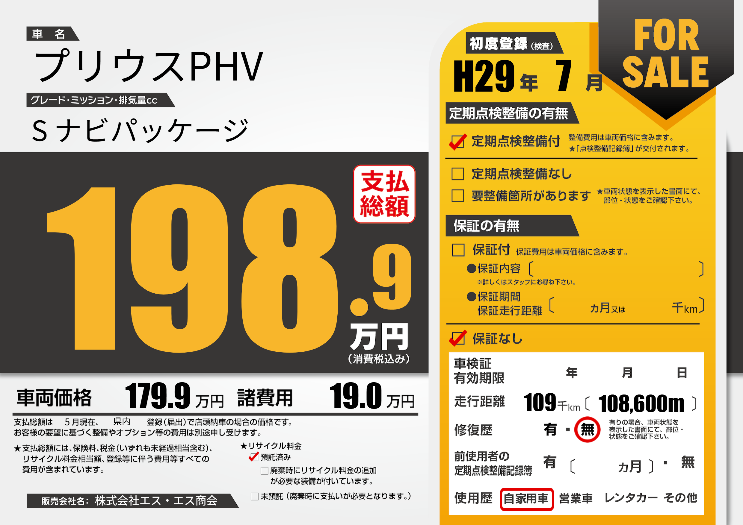 | 定期点検整備 | 定期点検整備あり | ||