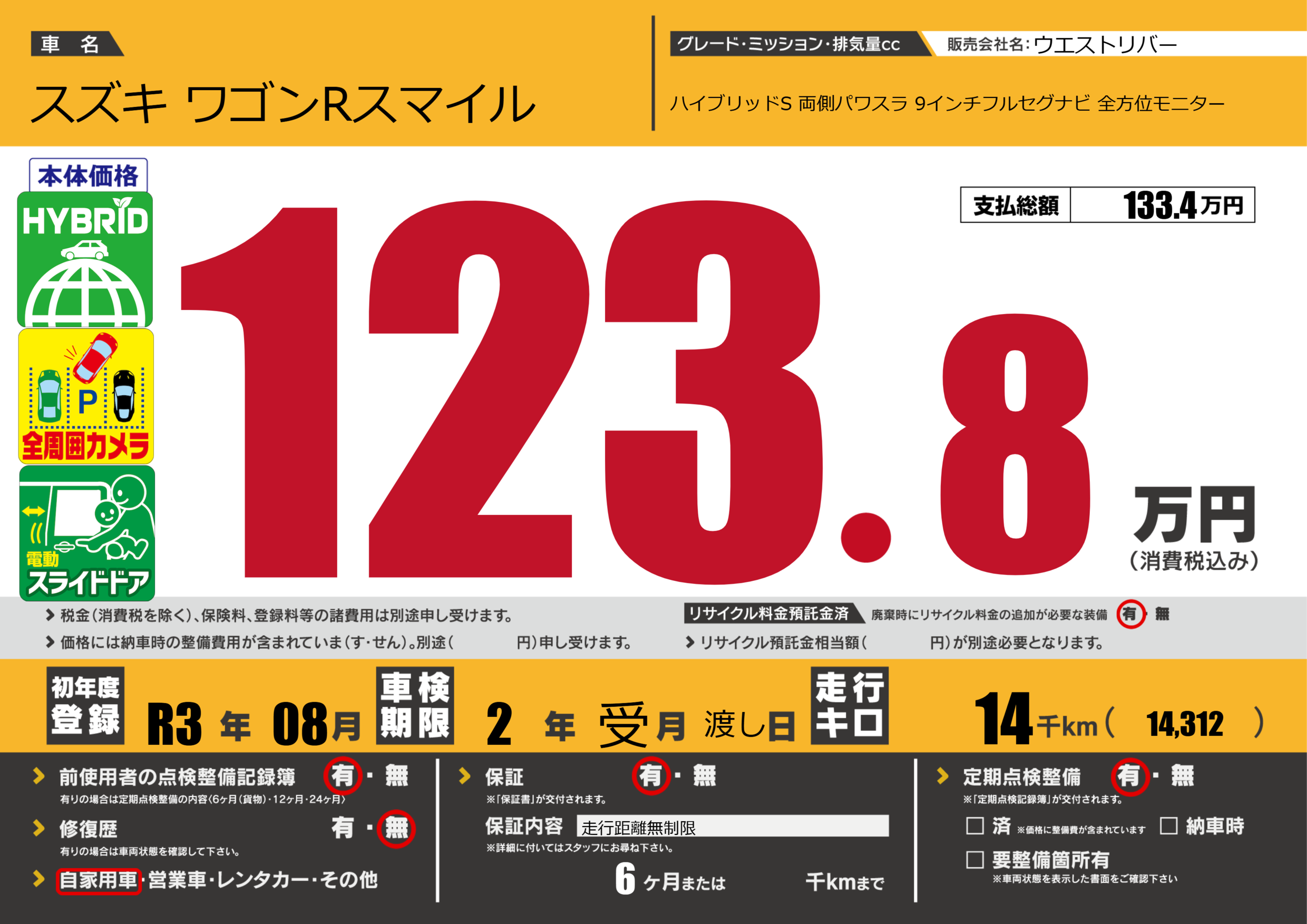 | 走行キロ | 1.4万km | 初年度登録 | R3年08月 |