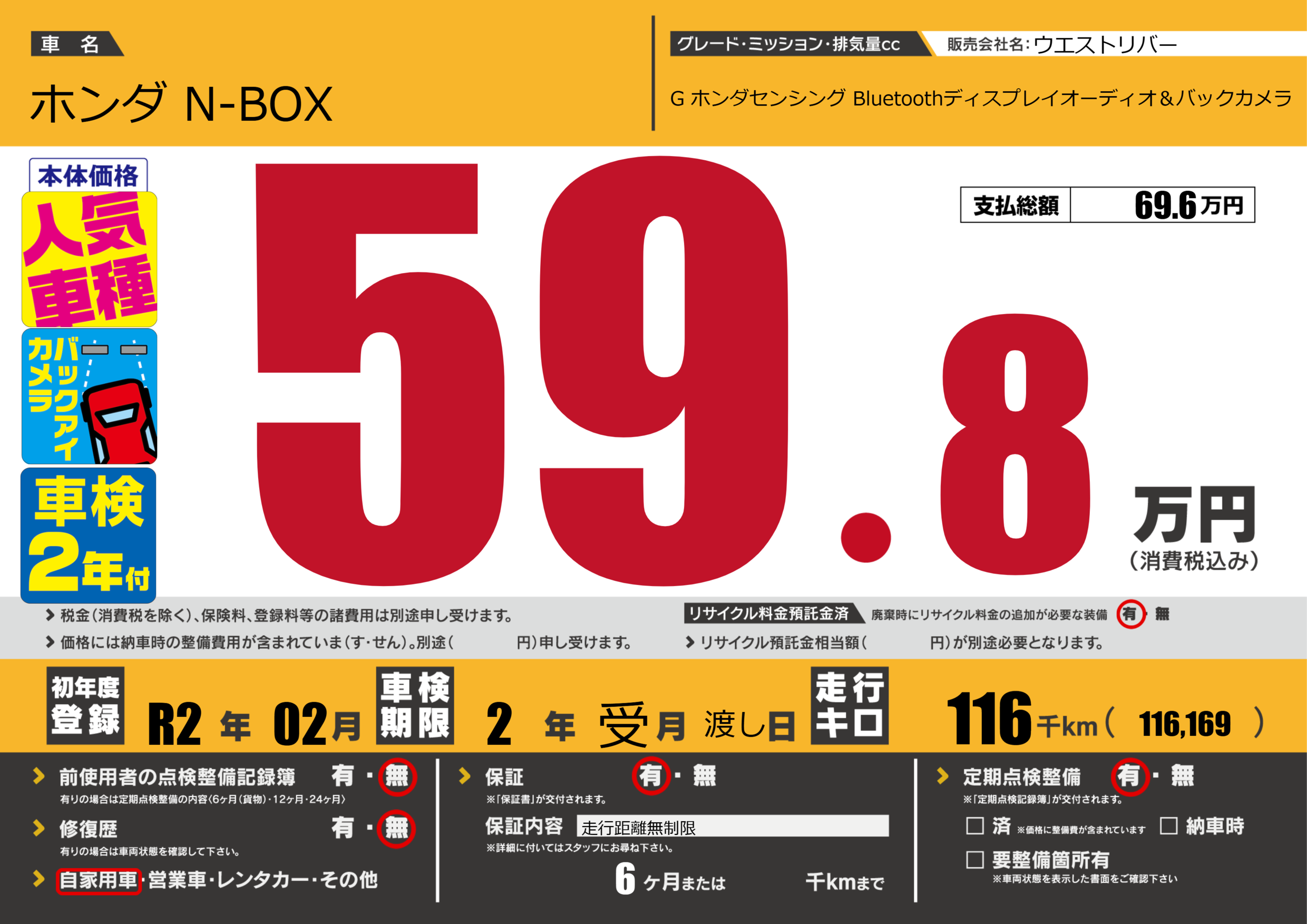 なし | 車検制限 | 2年受月渡し月 |