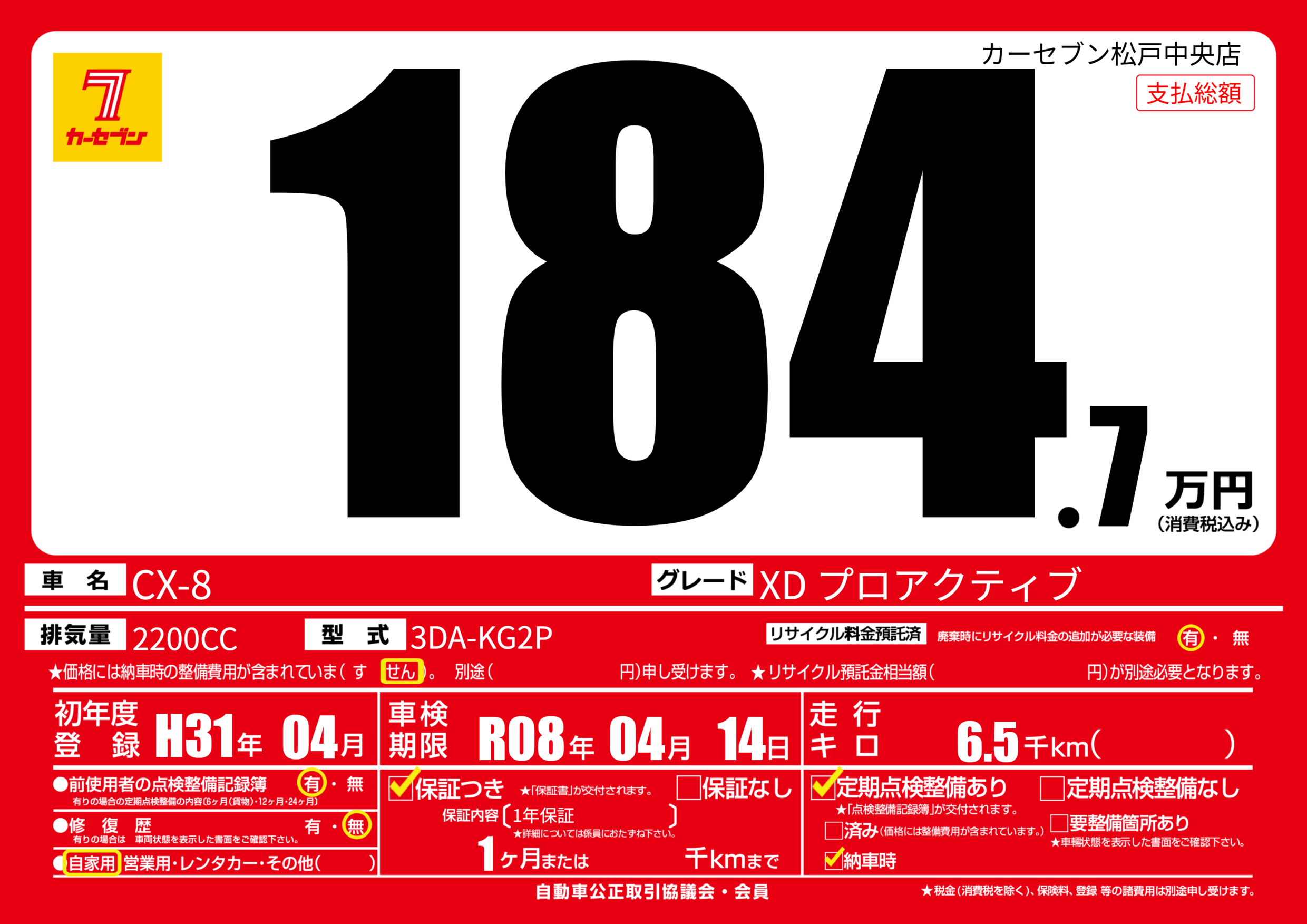 | 車名 | CX-8 | グレード ミッション 排気量 |
